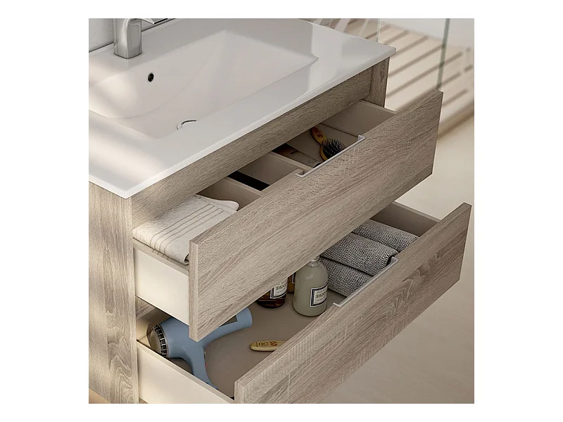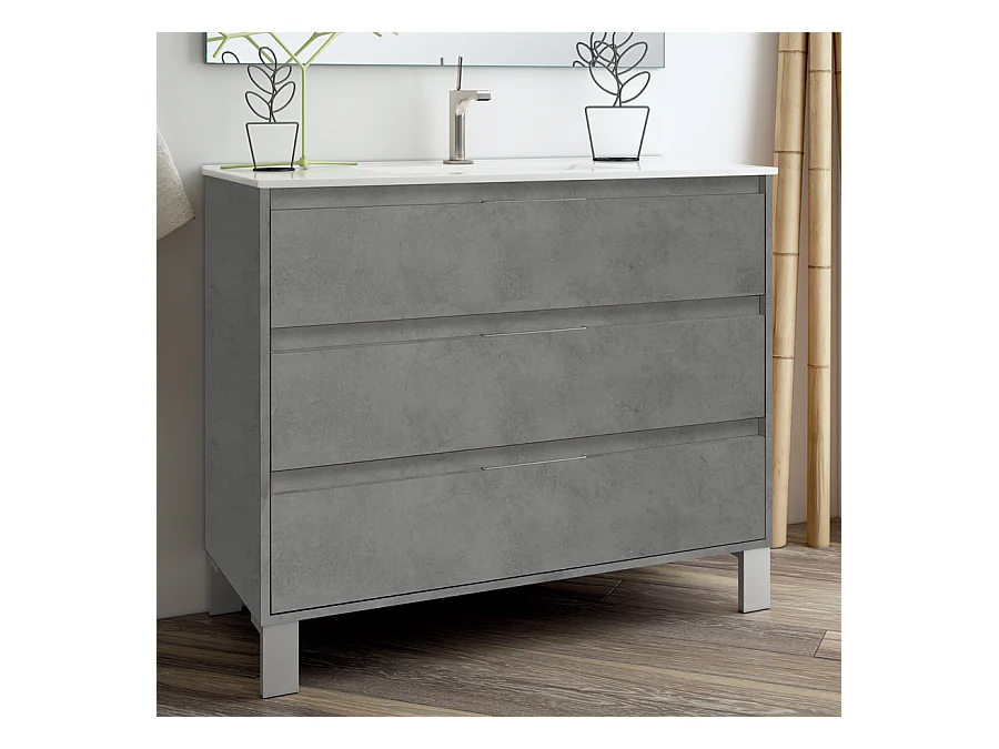 Meuble de salle de bain 80cm simple vasque - 3 tiroirs - sans miroir - TIRIS 3C - ciment (gris)