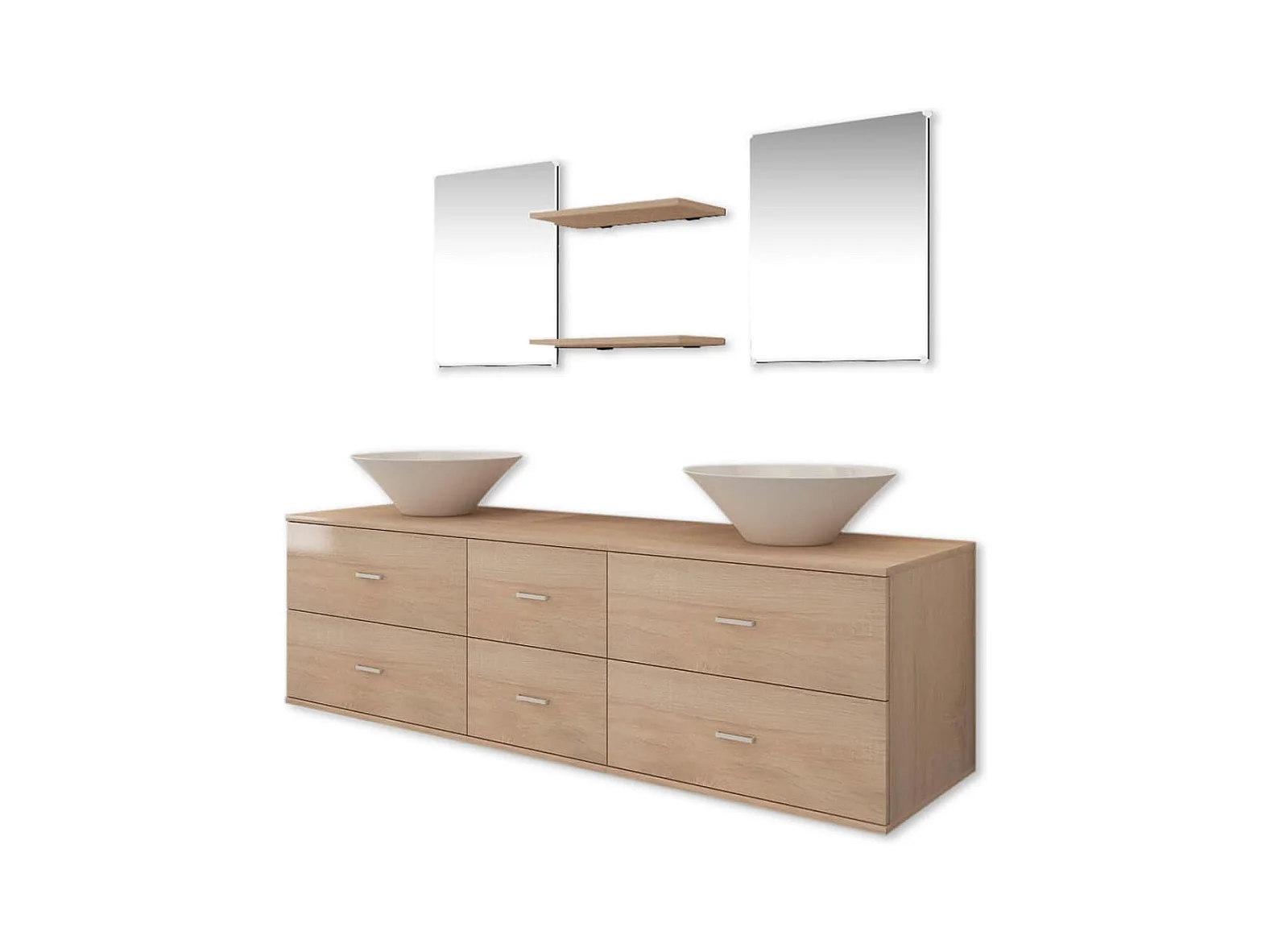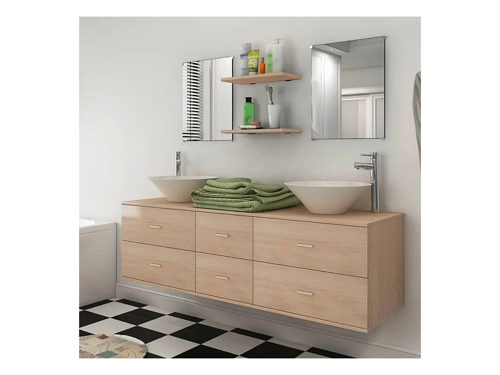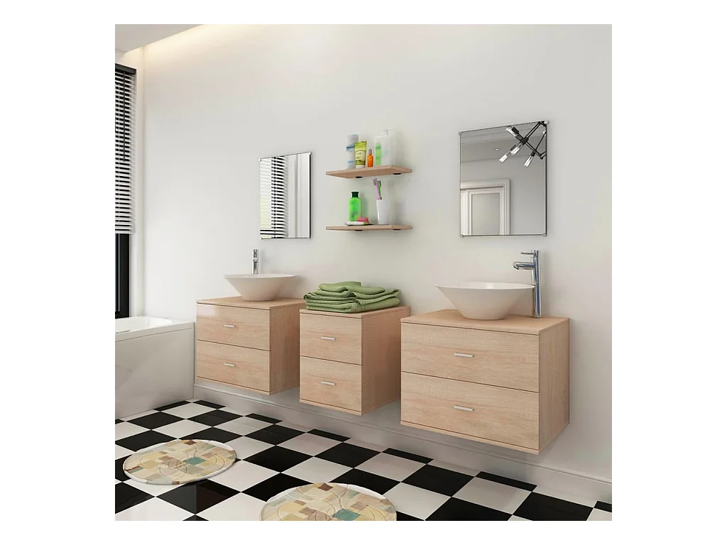 Meuble de salle de bain 9 pcs avec lavabo et robinet Beige