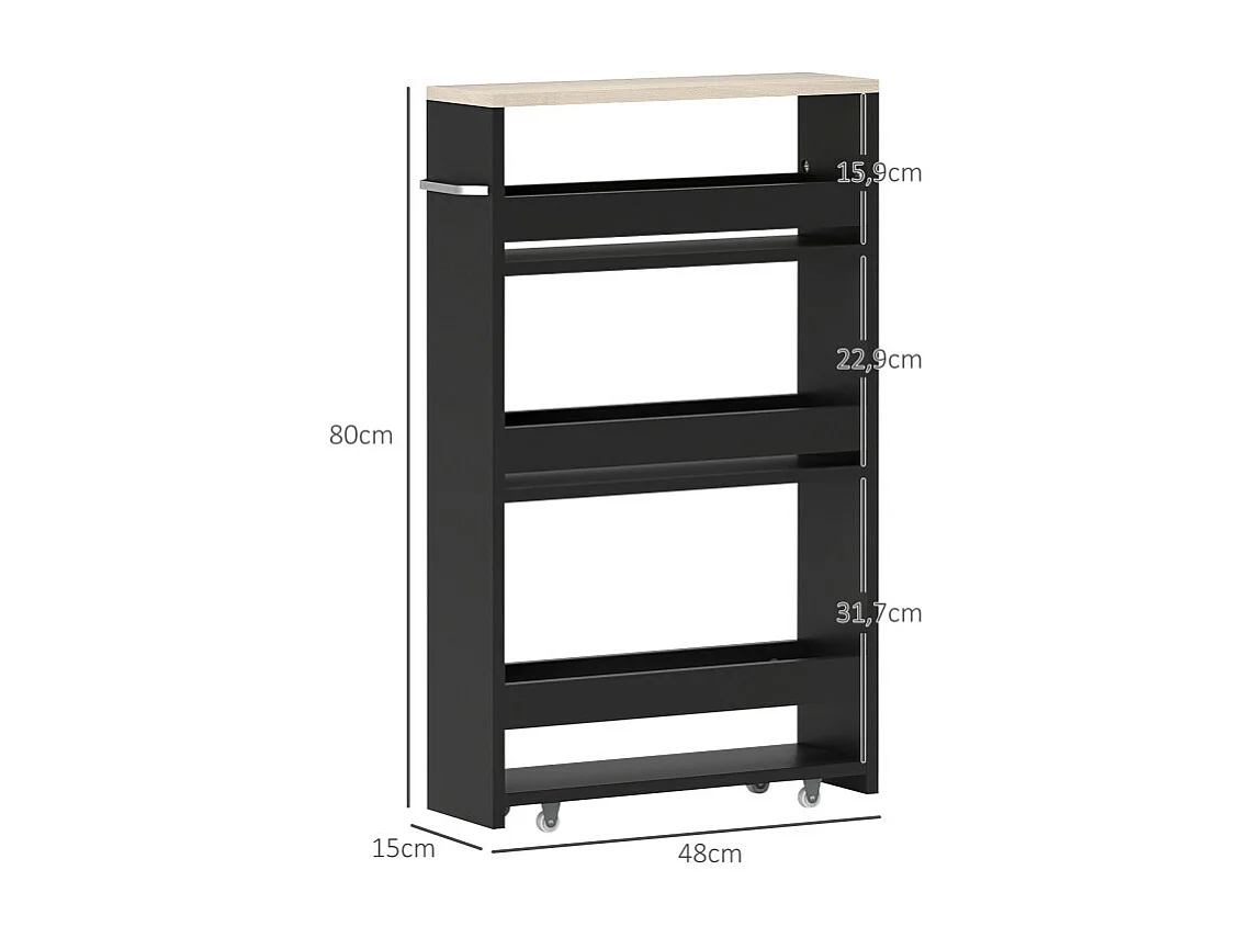 Meuble de salle de bain à roulettes LINDA Aspect bois et noir