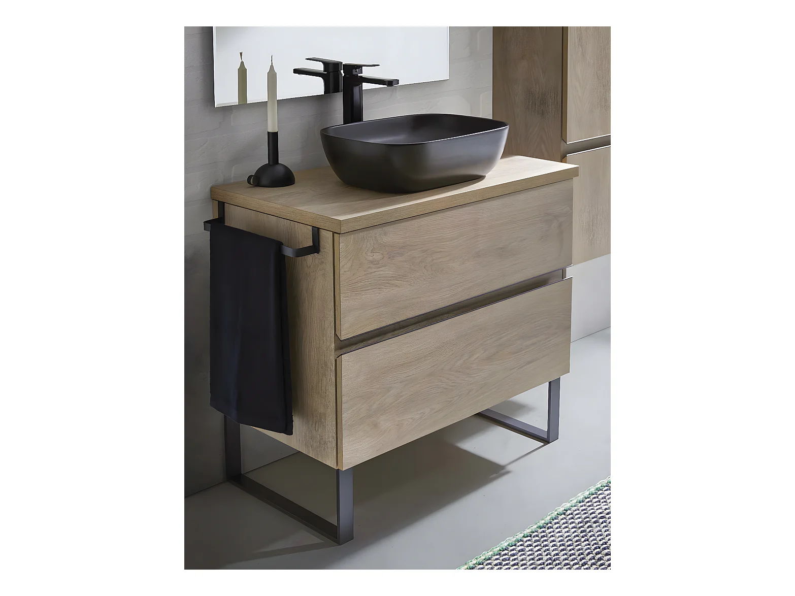 Meuble de salle de bain avec 2 tiroirs couleur chêne nordique + vasque à poser - Longueur 60 x Hauteur 87,5 x Profondeur 46,5 cm