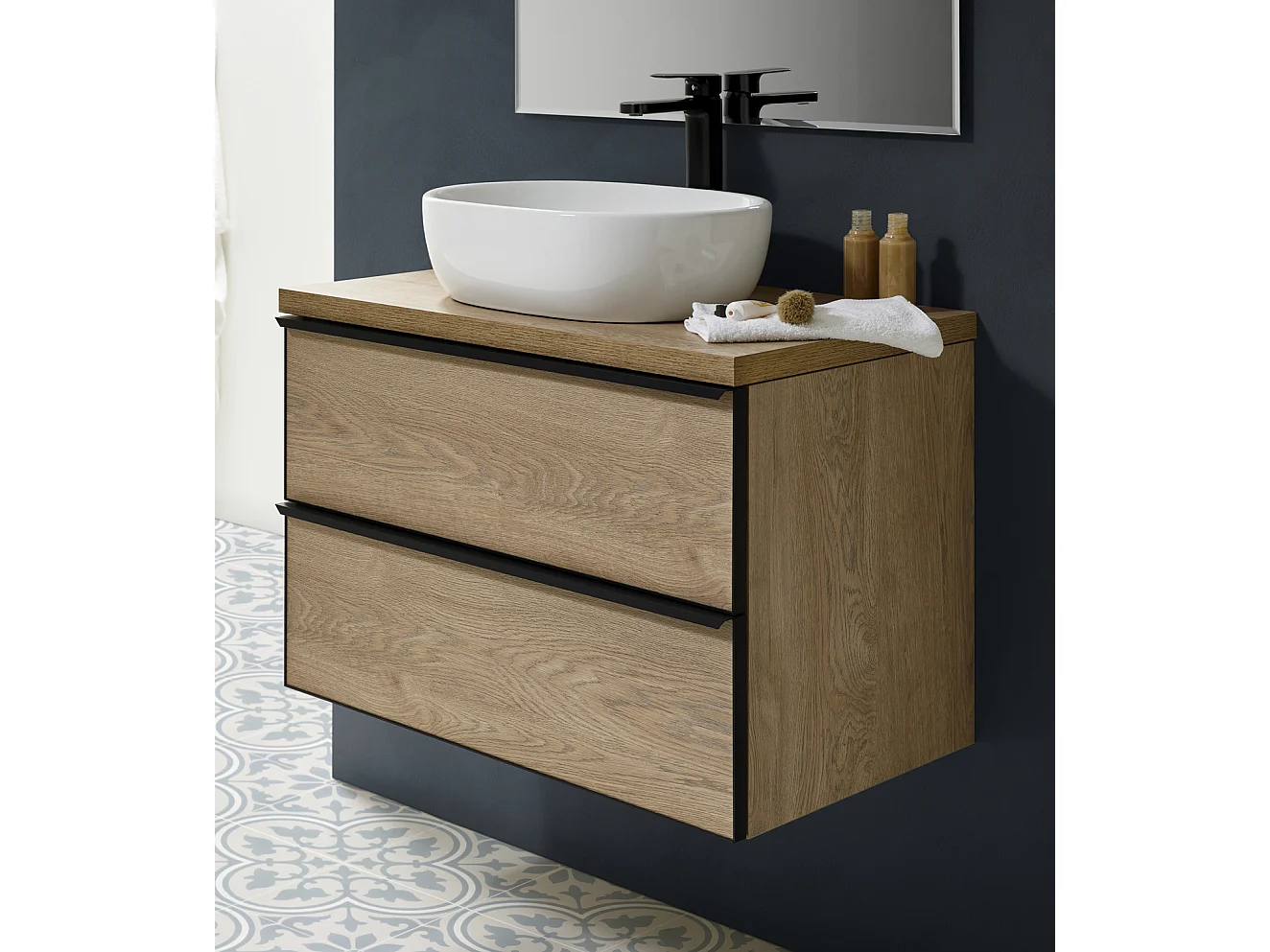 Meuble de salle de bain avec 2 tiroirs suspendus couleur chêne nordique + vasque à poser - Longueur 80 x Hauteur 50 x Profondeur 46,5 cm