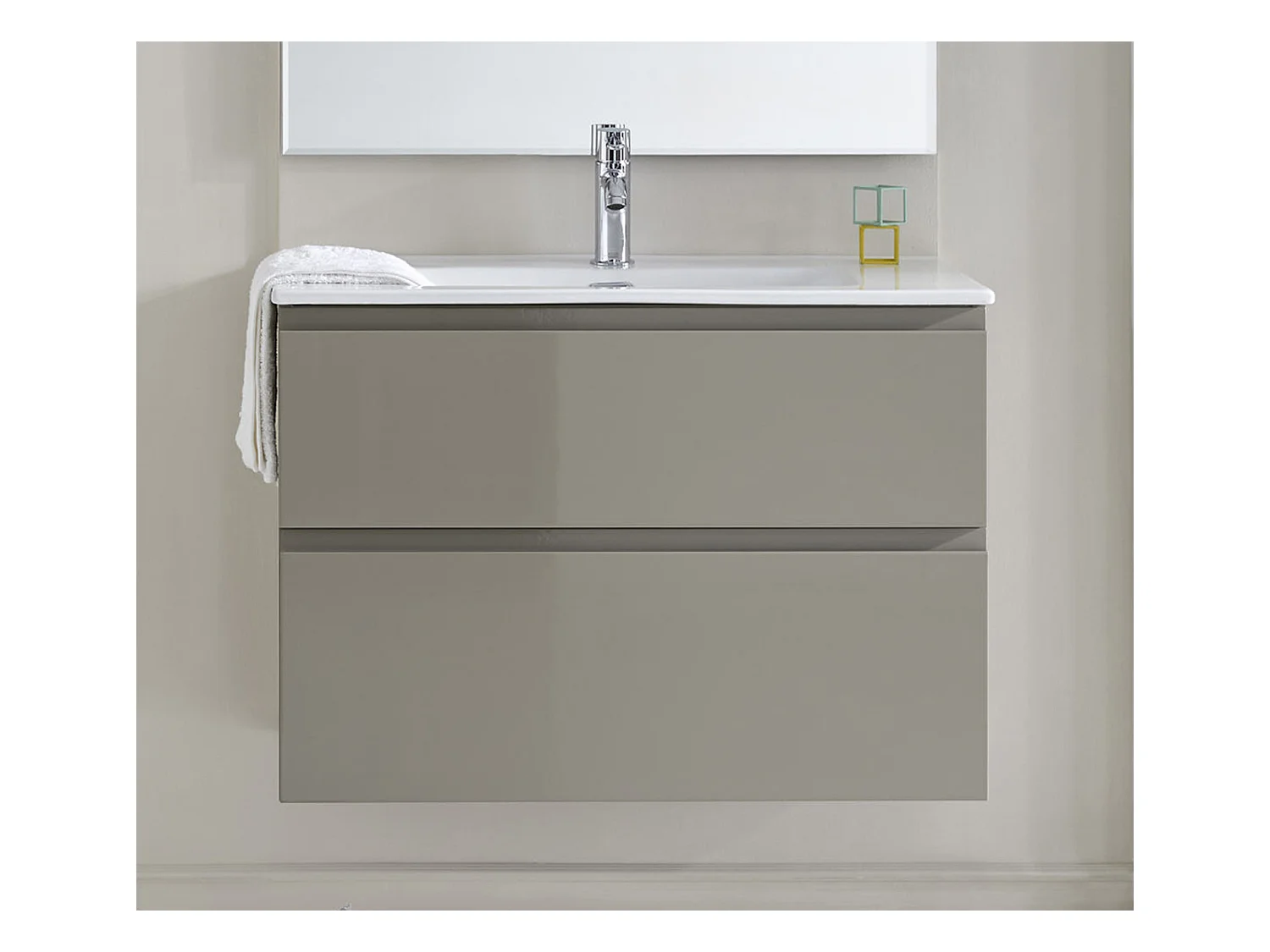 Meuble de salle de bain avec 2 tiroirs suspendus taupe brillant avec plan moulé - Longueur 60 x Hauteur 56 x Profondeur 46 cm
