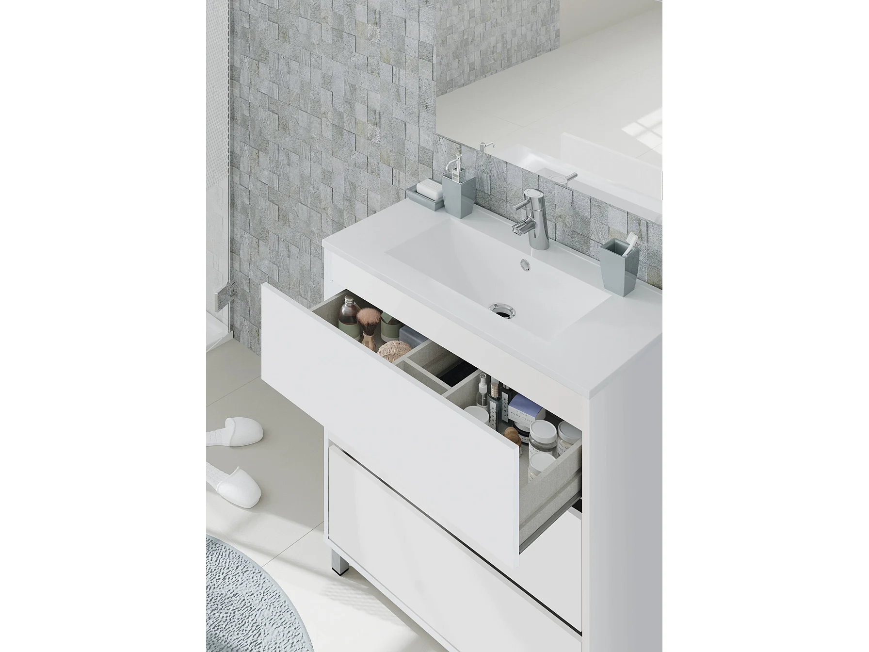 Meuble de salle de bain avec 3 portes coloris blanc - Hauteur 88 x Longueur 81 x Profondeur 47 cm
