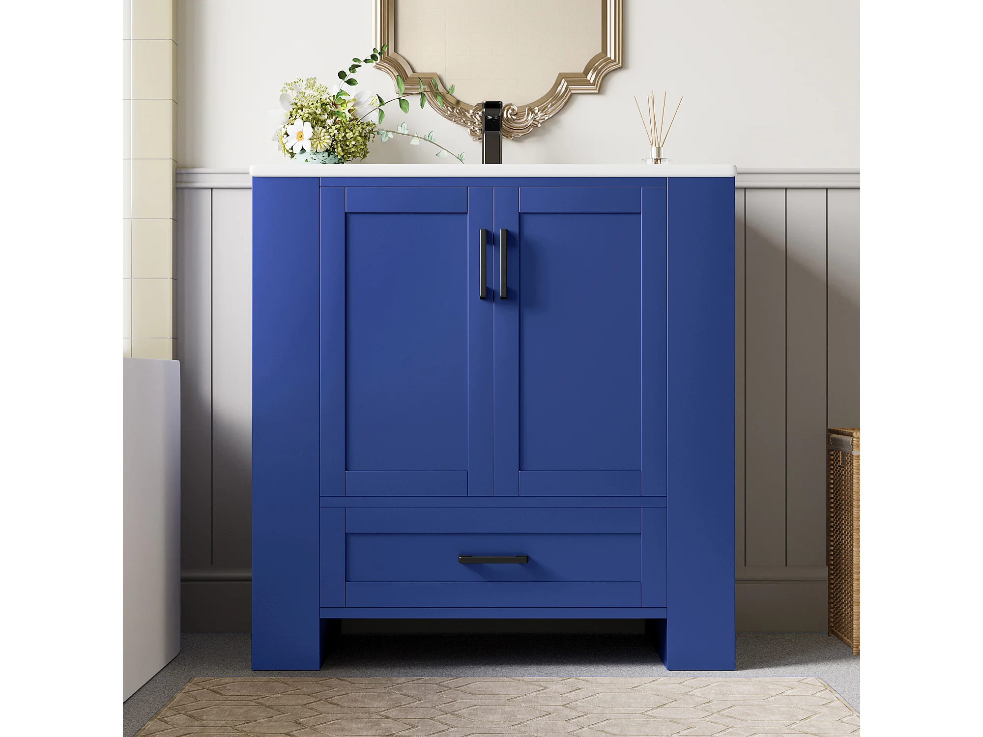 Meuble de Salle de Bain avec Lavabo Intégré, Design Moderne, MDF, Bleu, avec 2 Portes, 1 Tiroir, et Étagères Réglables (76x46x78.5 cm)