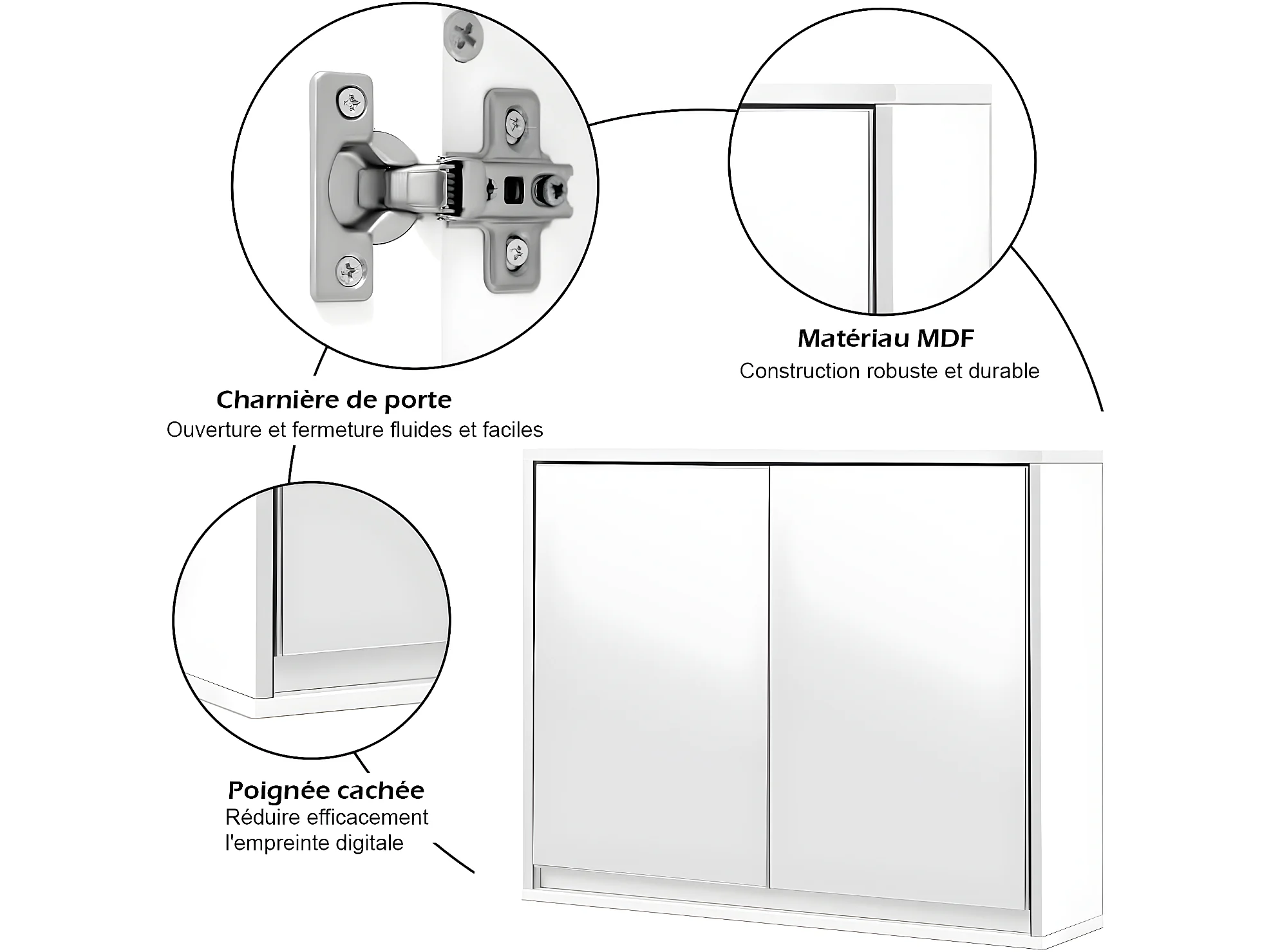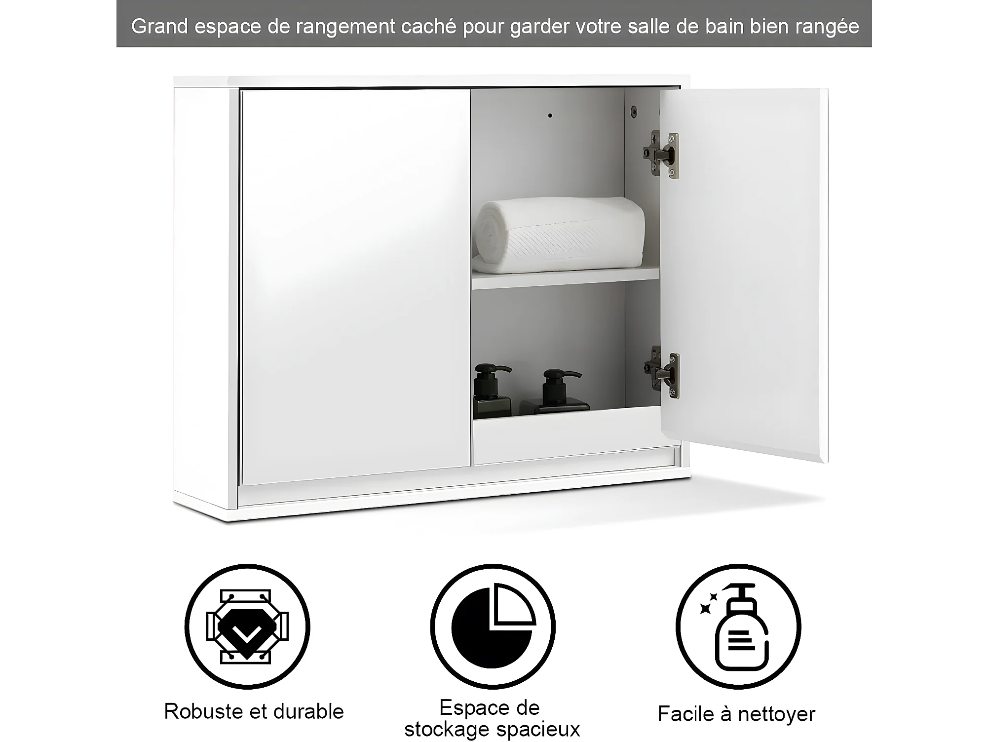 Meuble de salle de bain avec miroir hd, 55 x 14 x 45 cm armoire wc mural avec 2 portes