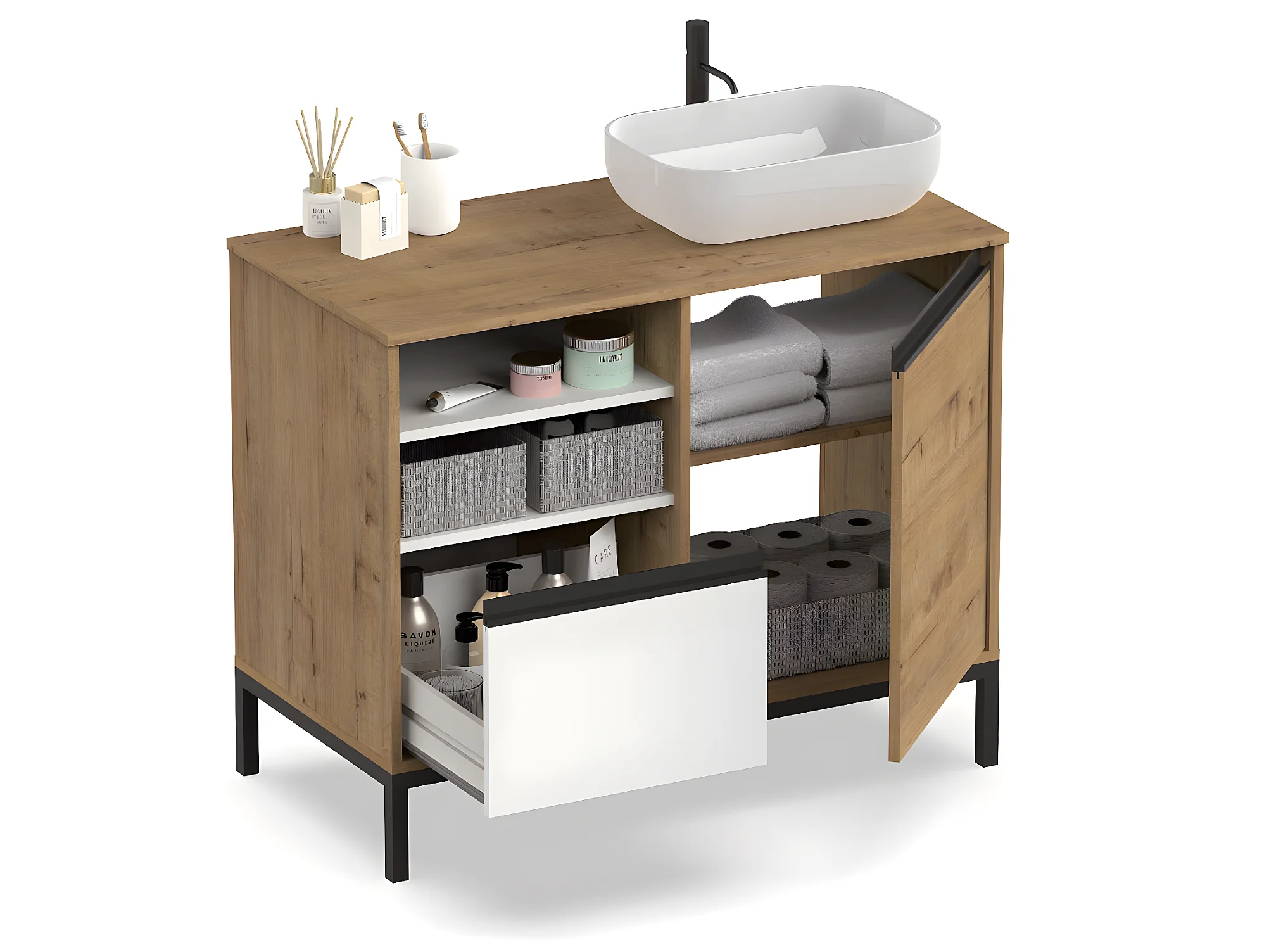 Meuble de salle de bain coloris chêne doré / pieds noir - Hauteur 81 x Longueur 100 x Profondeur 51 cm