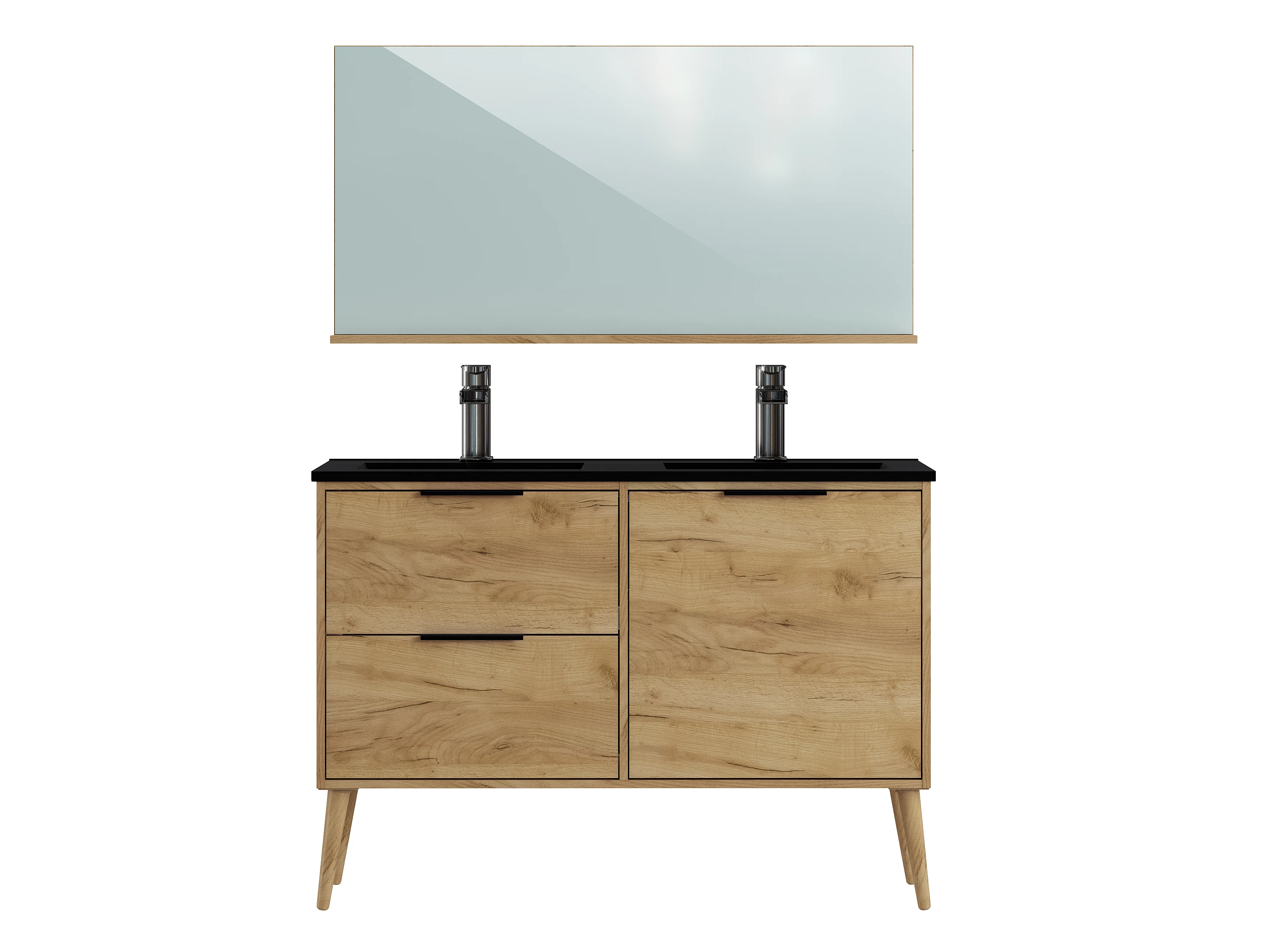 Meuble de Salle de Bain coloris Chêne rustique - Longueur 122 x Profondeur 46 x Hauteur 87 cm