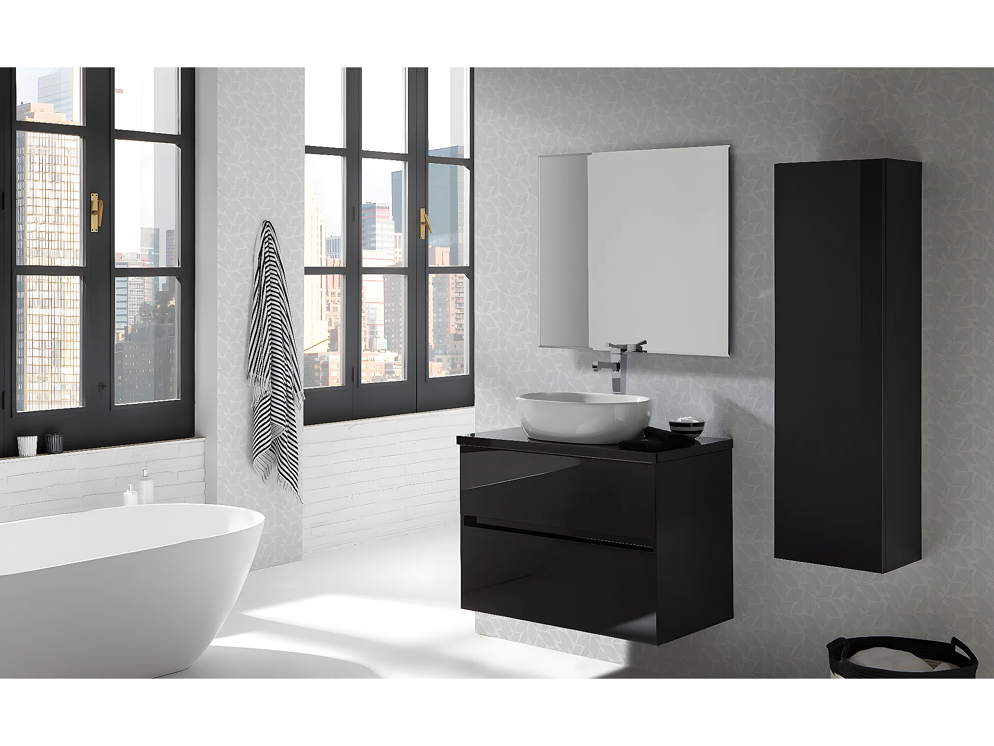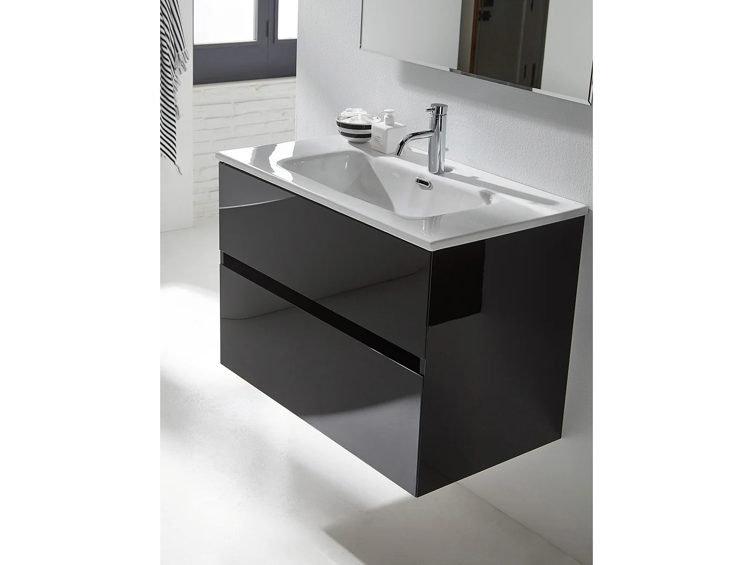 Meuble de salle de bain coloris noir avec vasque moulée en céramique - Longueur 100 x Profondeur 46 x Hauteur 56 cm
