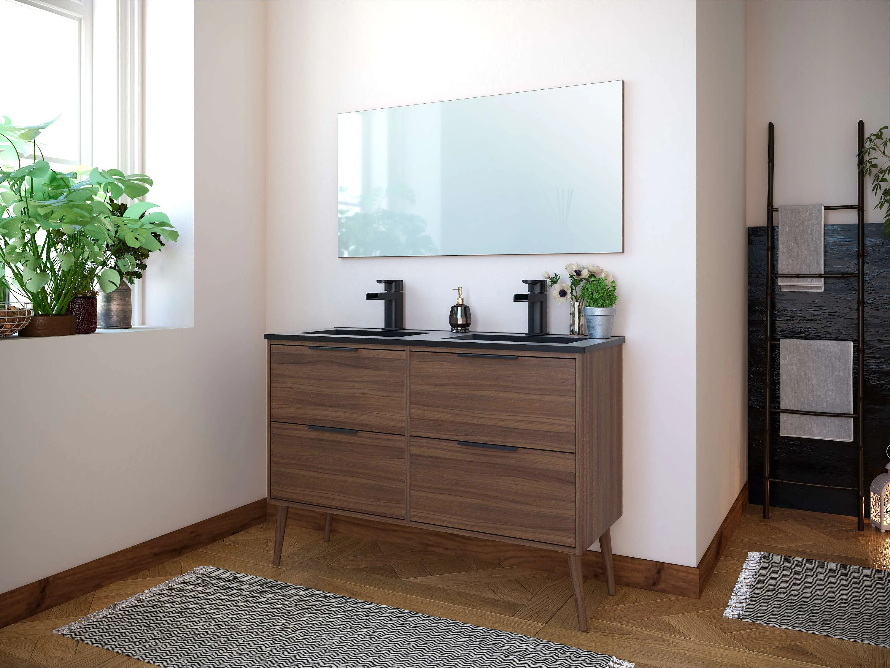 Meuble de salle de bain CONI 4 tiroirs 120 cm chêne T-BATH Inclus lavabo et miroir