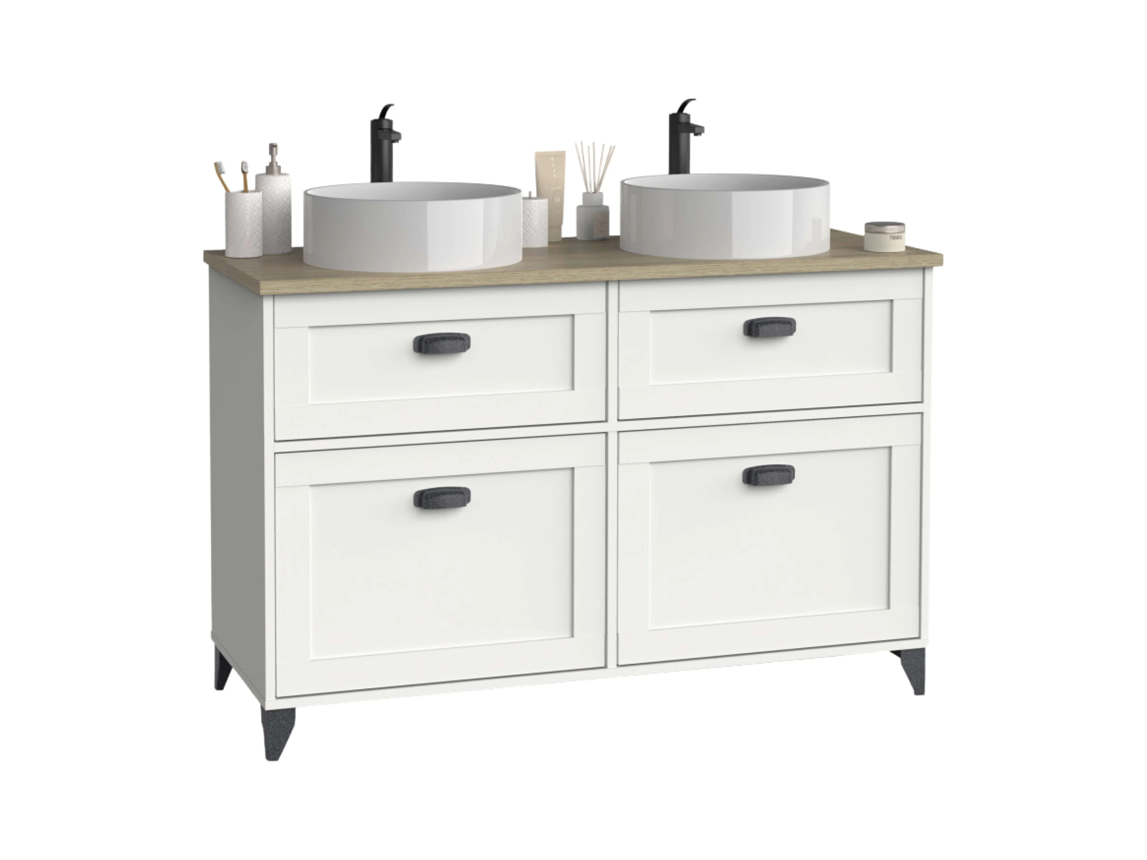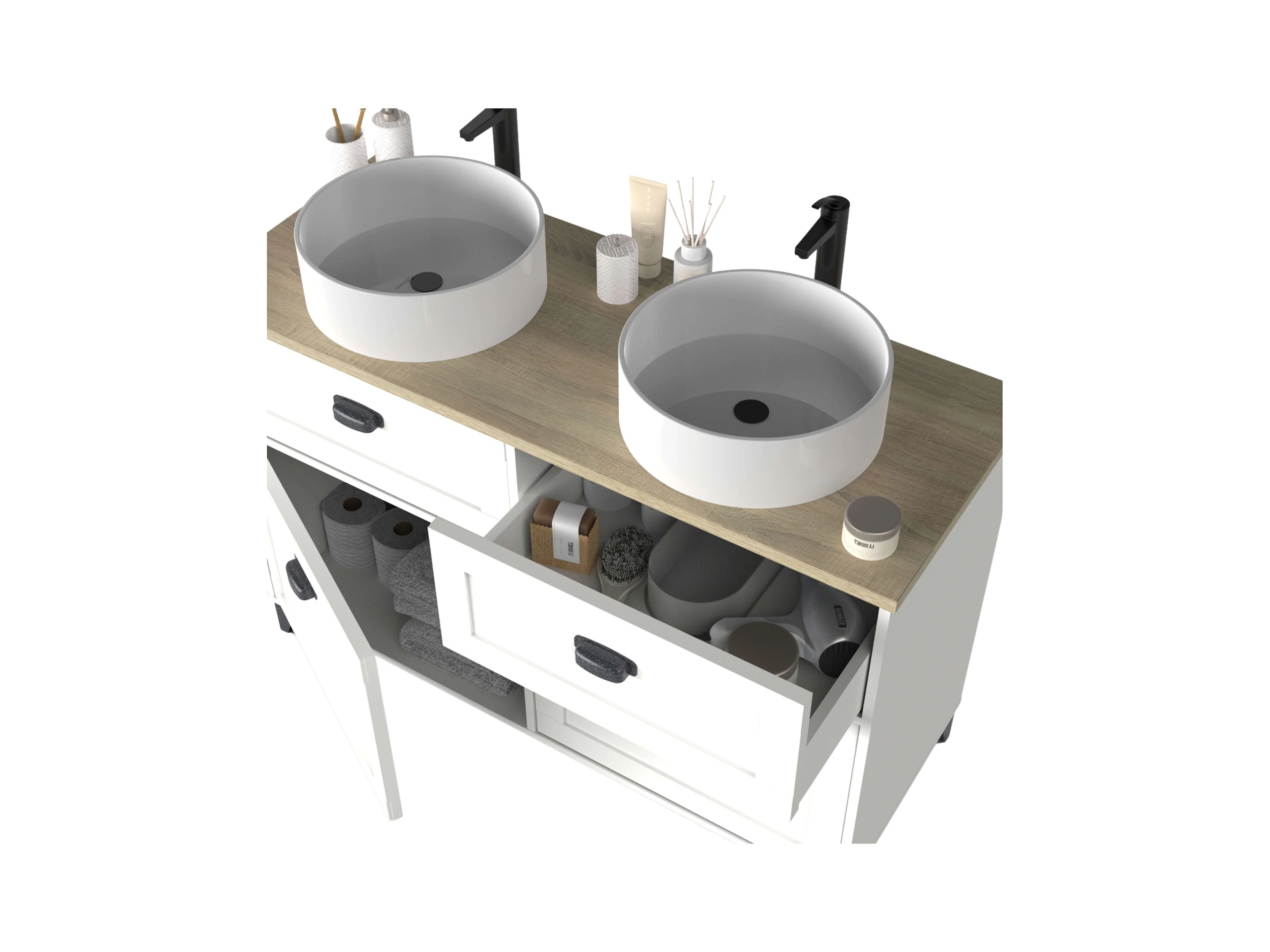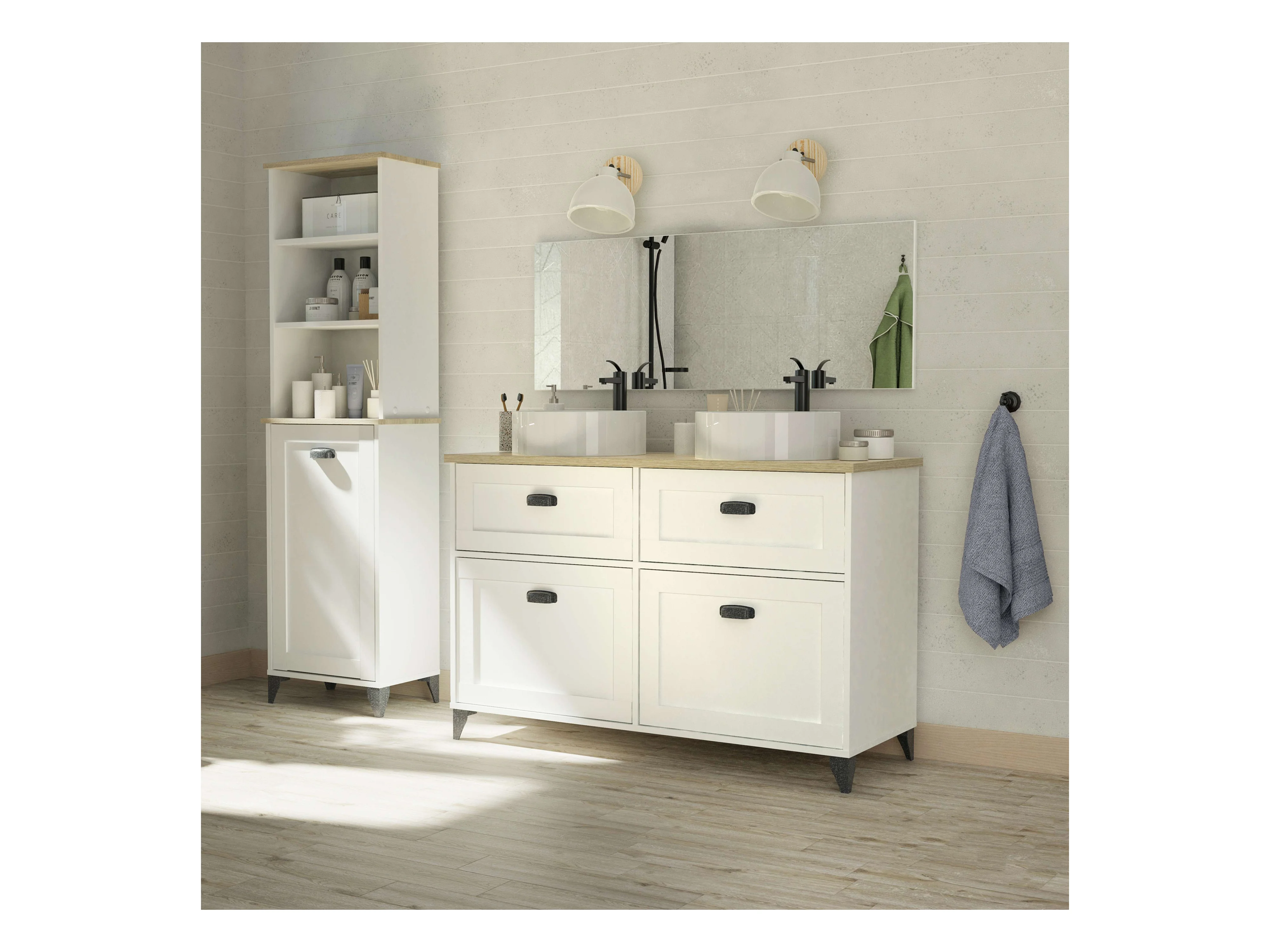 Meuble de salle de bain double Toscana, 2 portes, sans lavabo, 120 cm, blanc/chêne