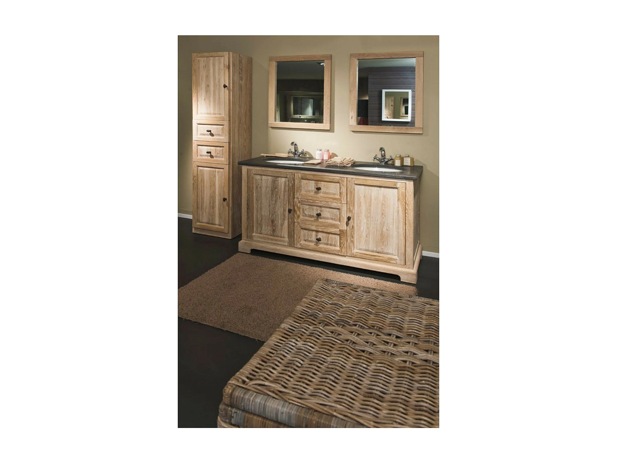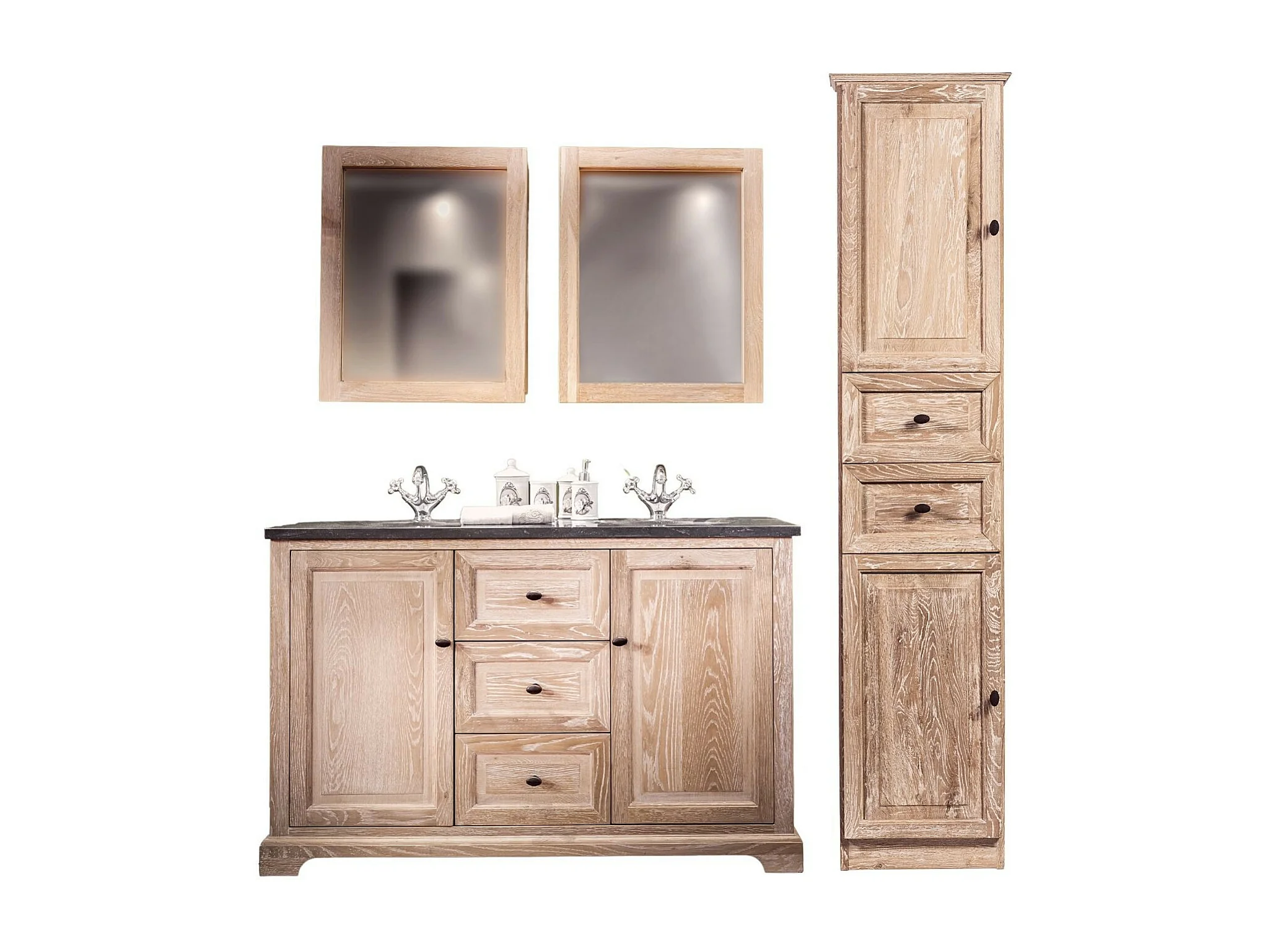 Meuble de salle de bain en chêne blanchi + colonne (ensemble) - VIENNE II