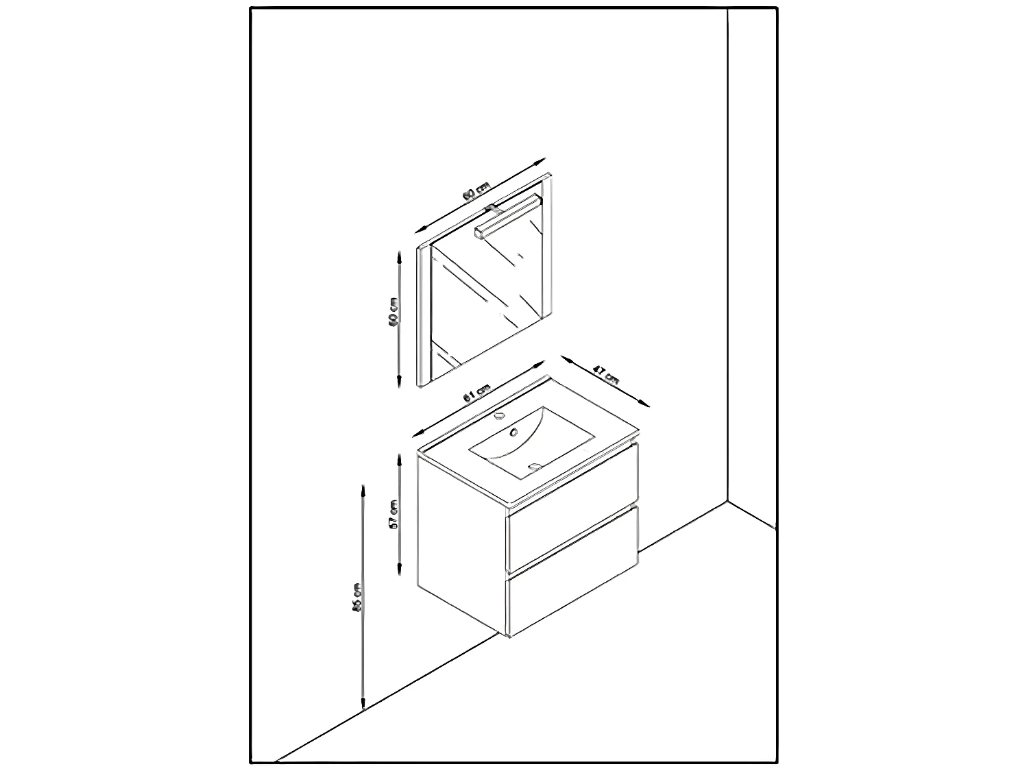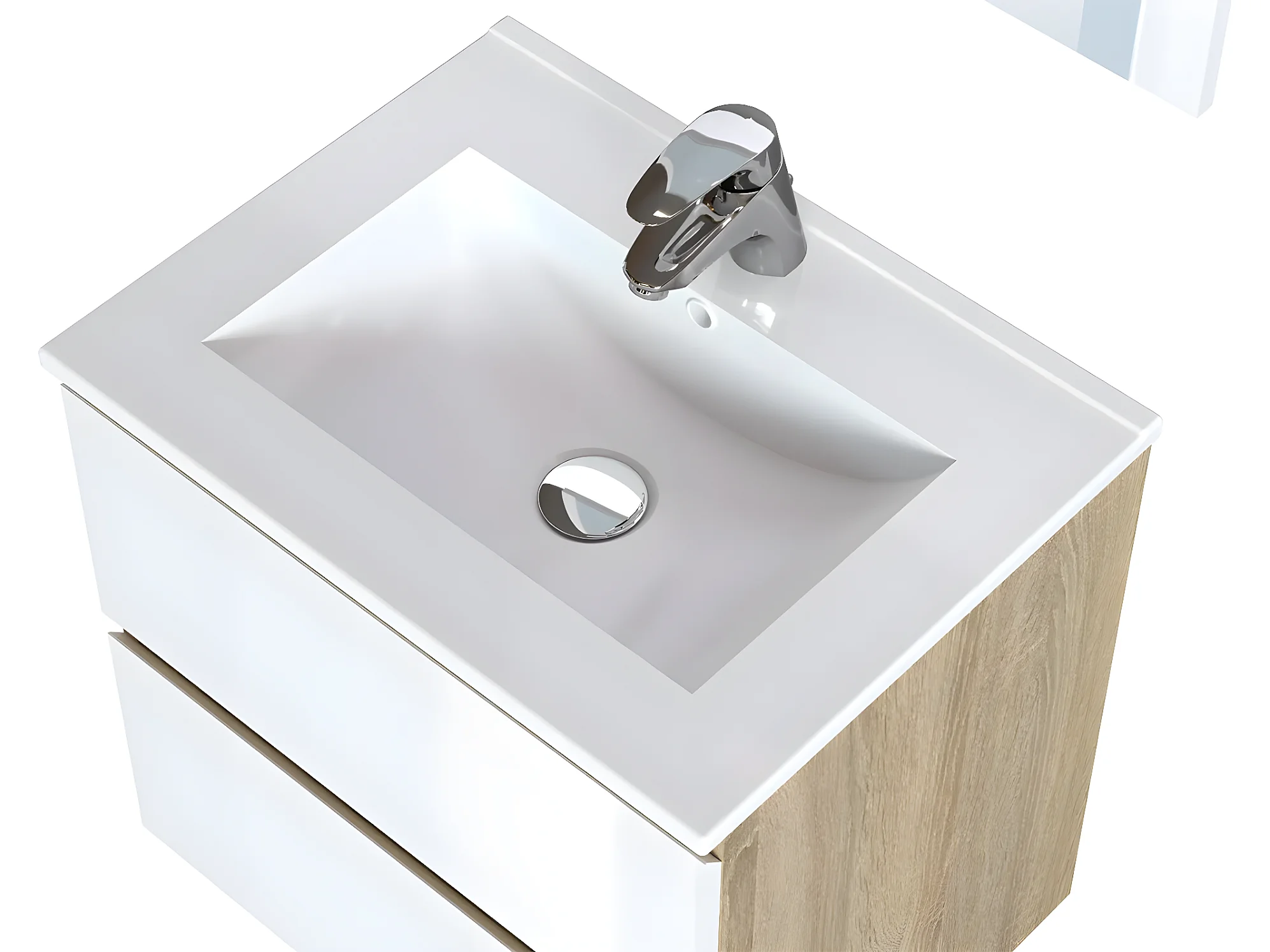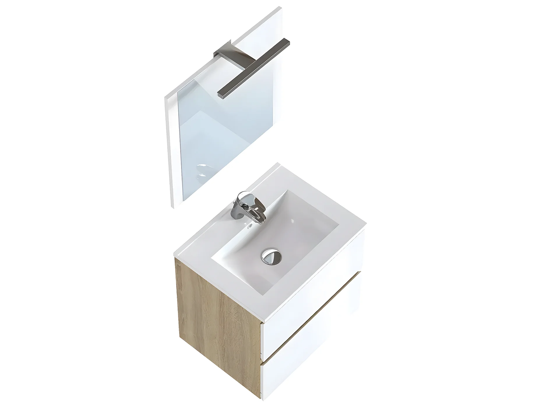 Meuble de salle de bain en mélamine coloris chêne / blanc - Longueur 60 x profondeur 45 x Hauteur 85 cm