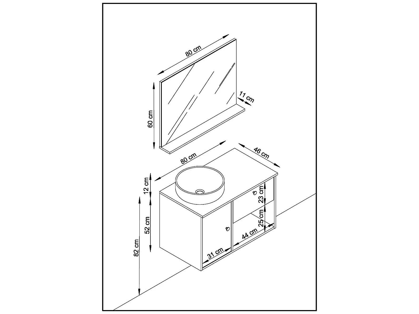 Meuble de salle de bain en mélamine coloris chêne et blanc - Longueur 80 x profondeur 46 x Hauteur 63 cm