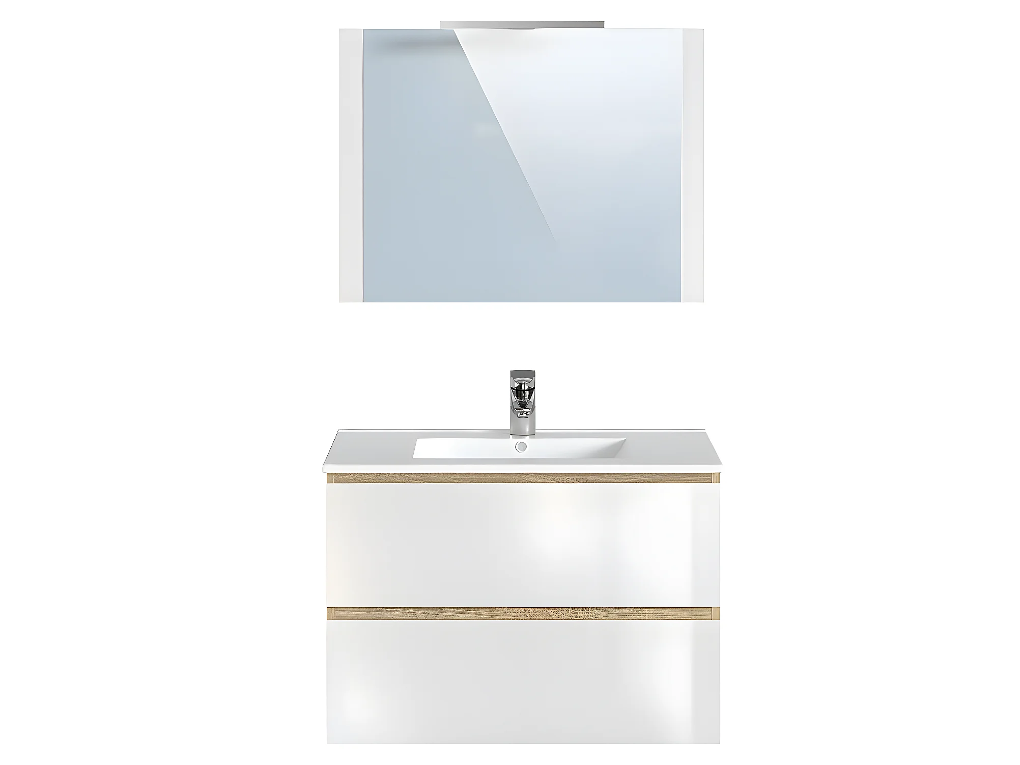 Meuble de salle de bain en mélamine couleur chêne / blanc brillant - Longueur 80 x profondeur 45 x Hauteur 85 cm