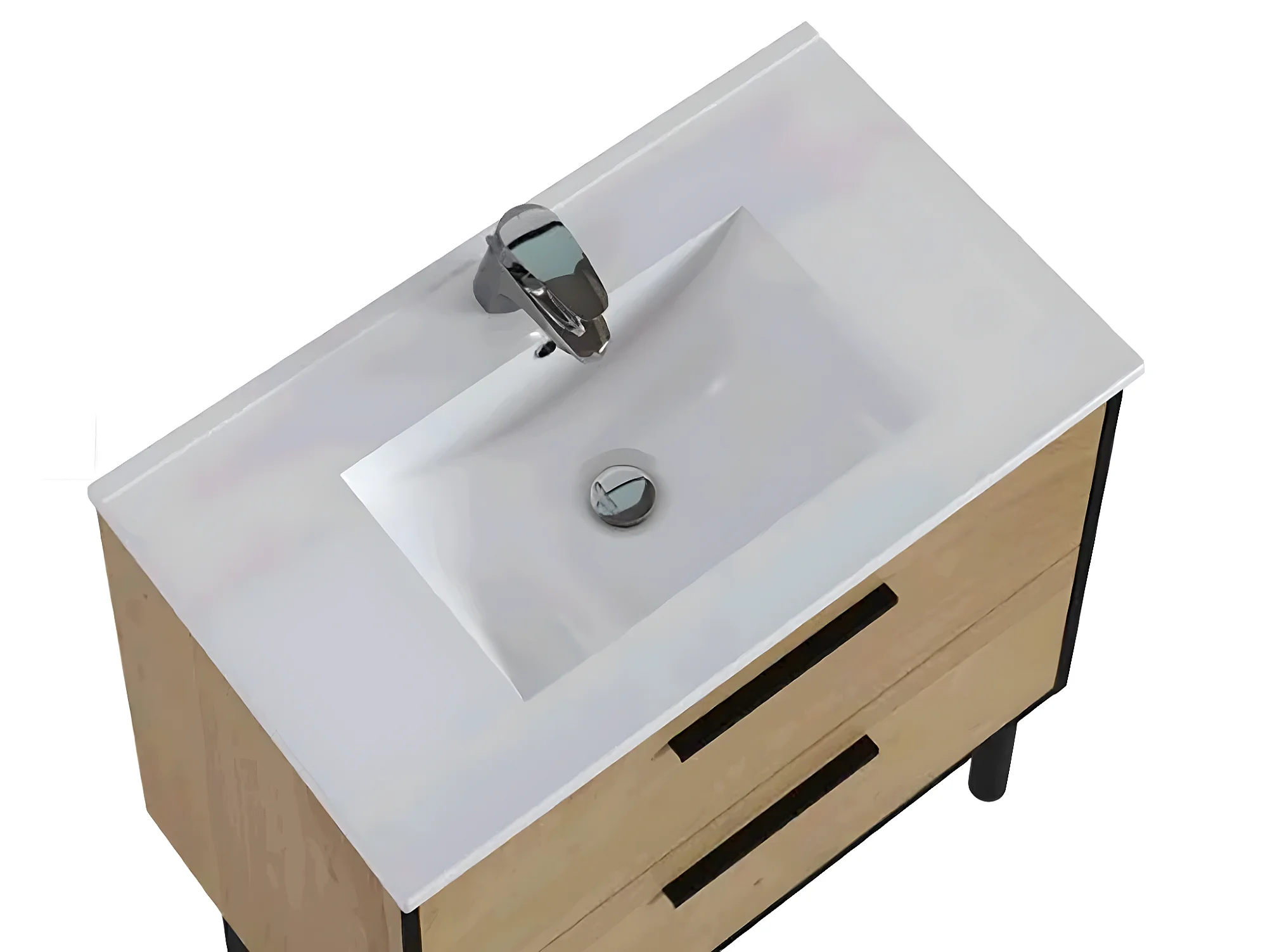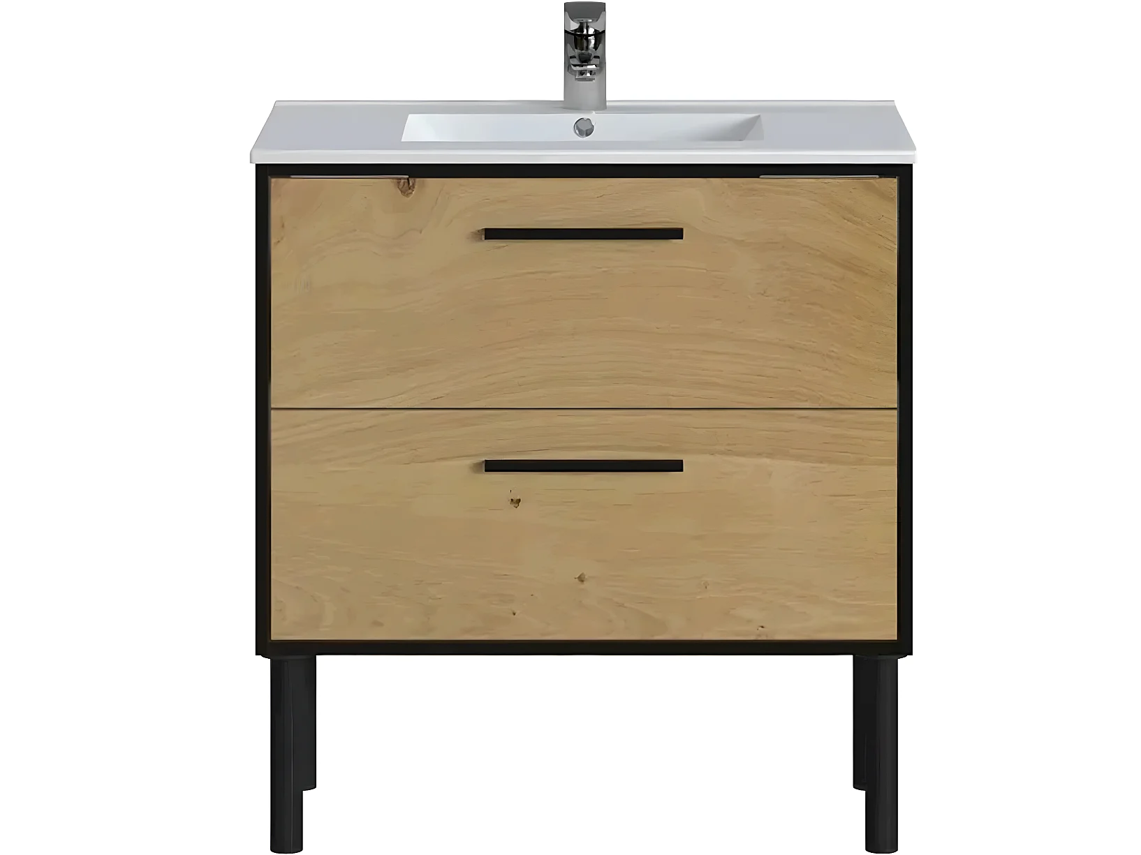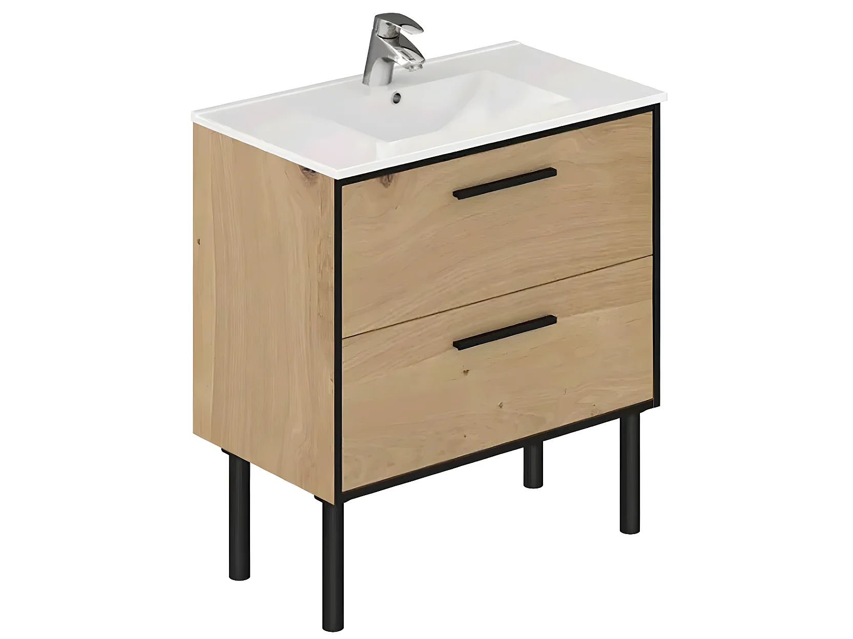 Meuble de salle de bain en placage chêne coloris naturel / noir - Longueur 81 x profondeur 47 x Hauteur 87 cm