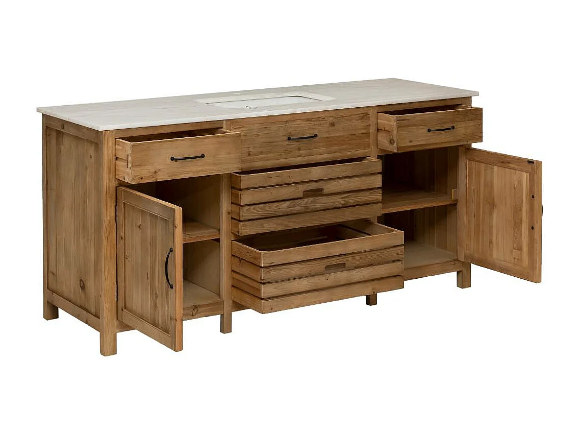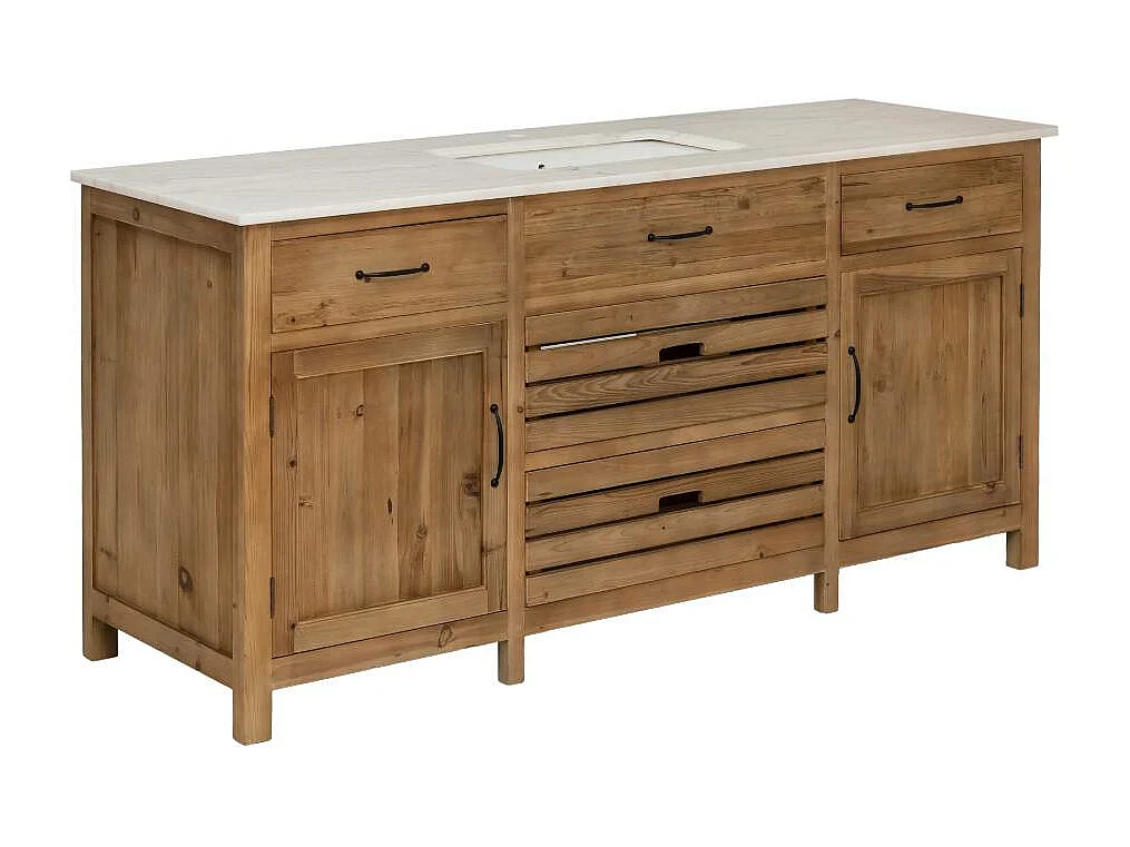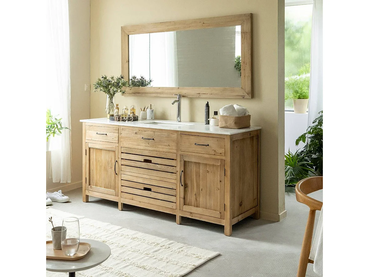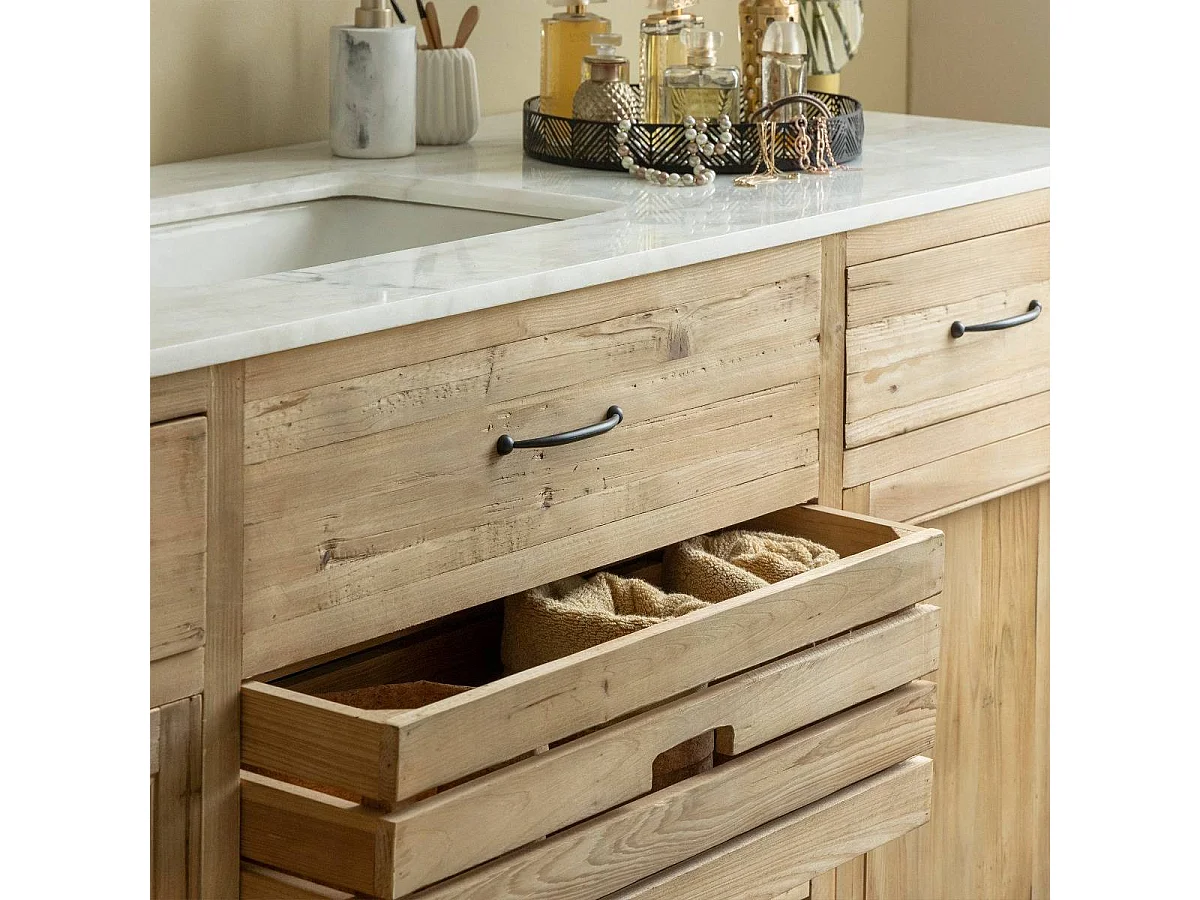 Meuble sous vasque en vieux pin et marbre blanc Nils