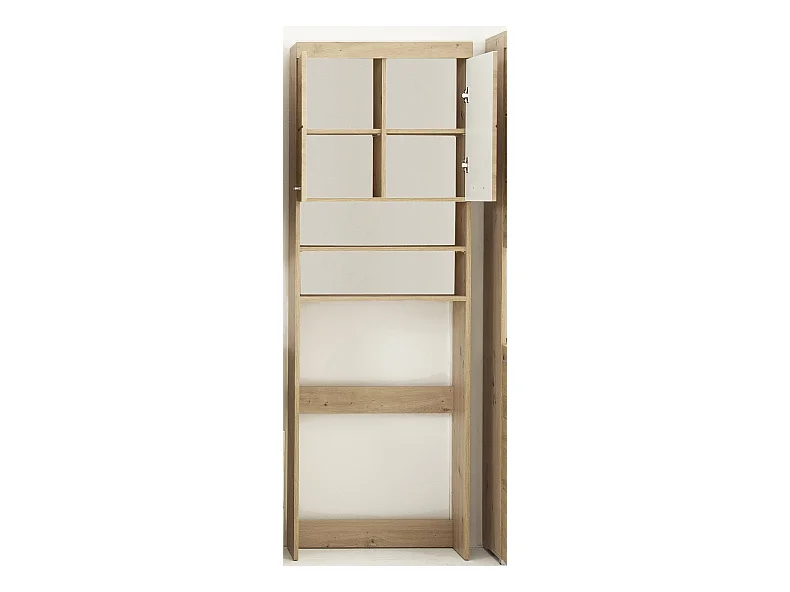 Meuble de salle de bain mélaminé emplacement lave linge. Chêne. L-H-P : 63 - 187 - 24 cm.