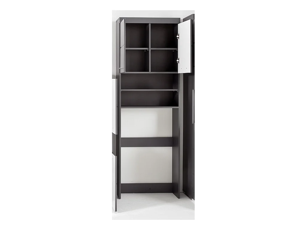 Meuble de salle de bain mélaminé emplacement lave linge. Gris. L-H-P : 63 - 187 - 24 cm.