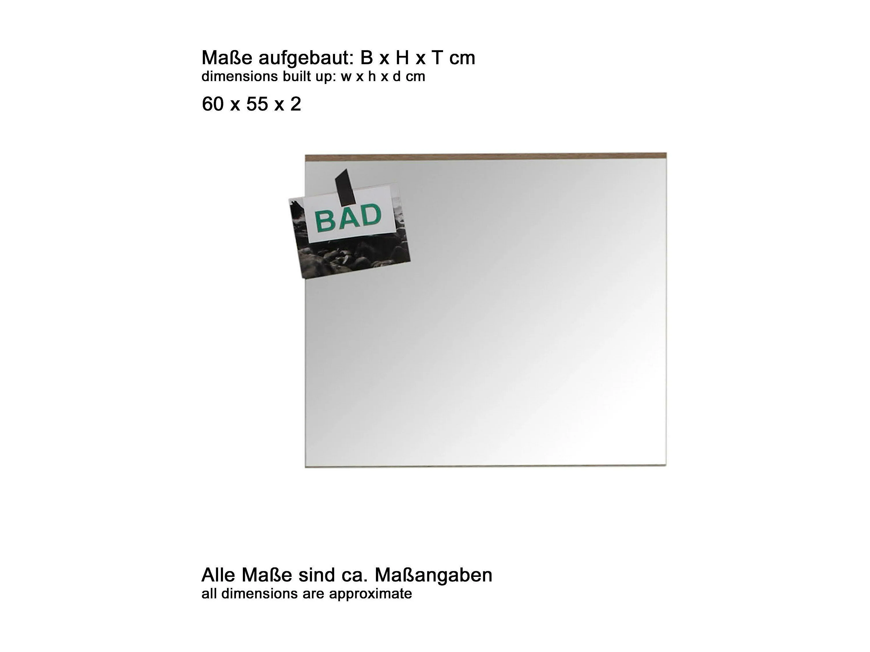Meuble de salle de bain - Miroir avec un détail en mélaminé chêne. L-H-P : 60 - 55 - 2 cm