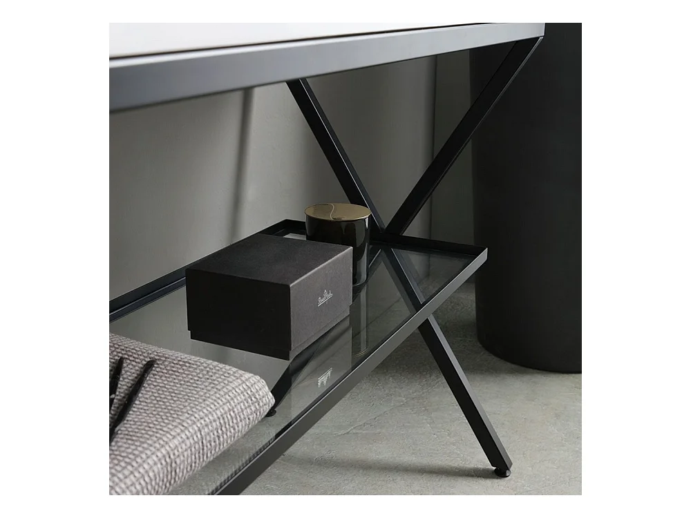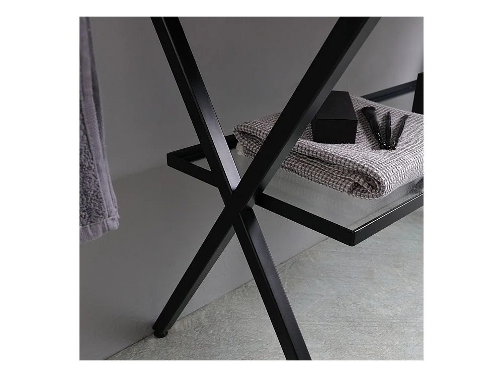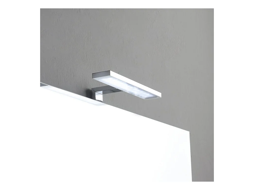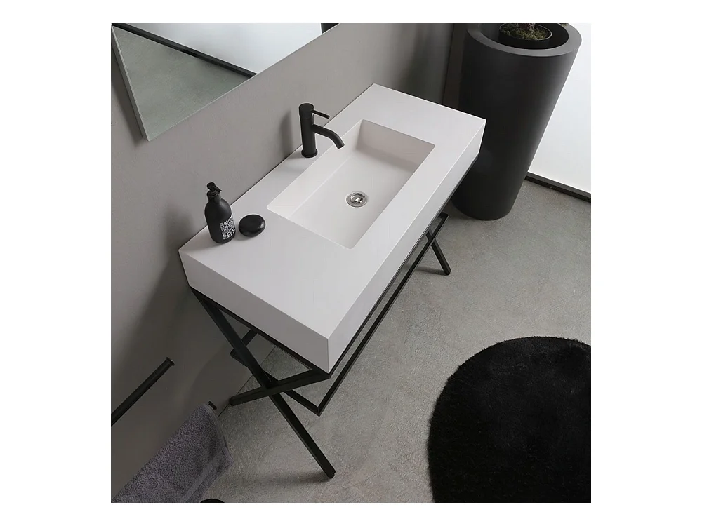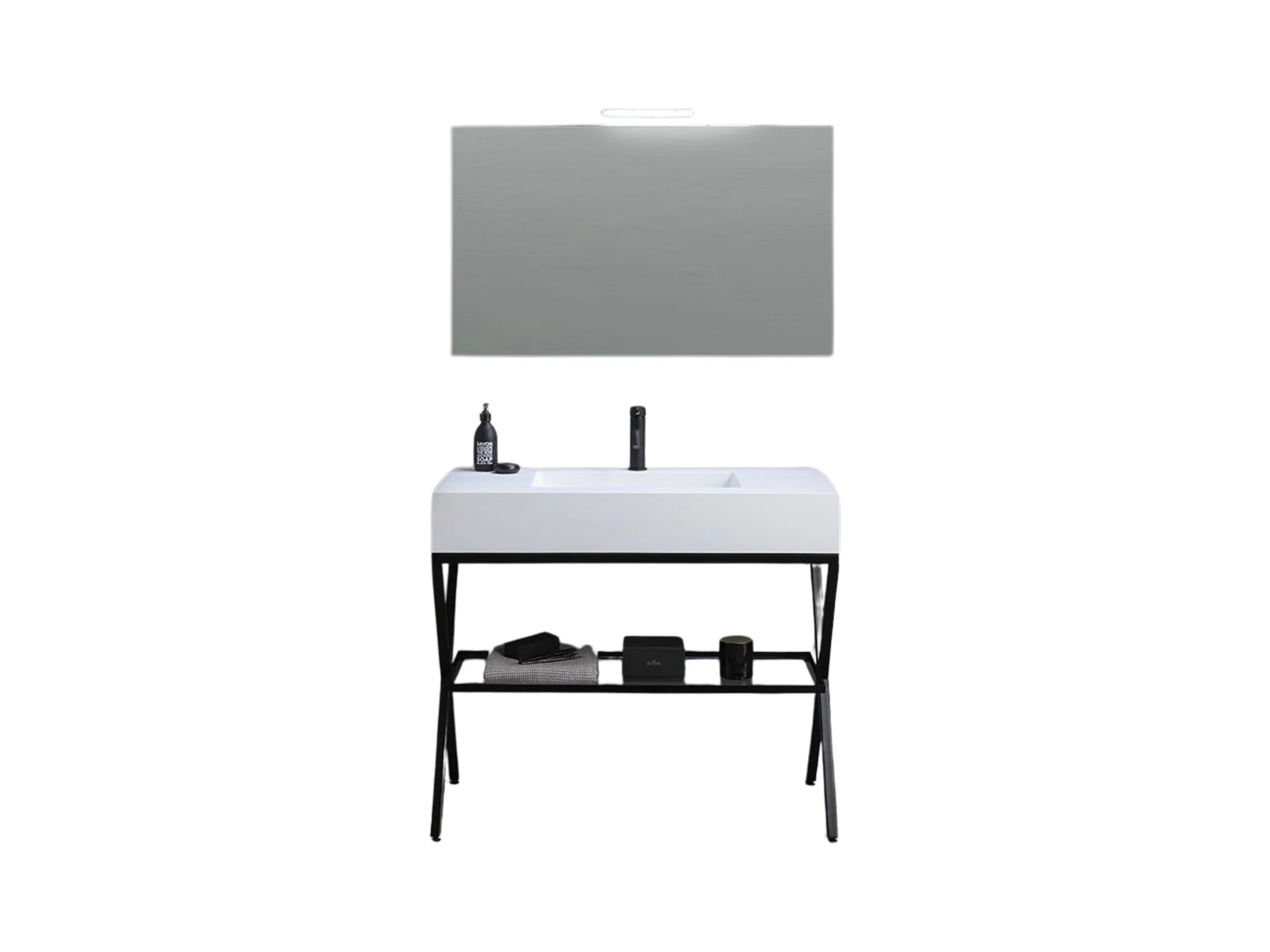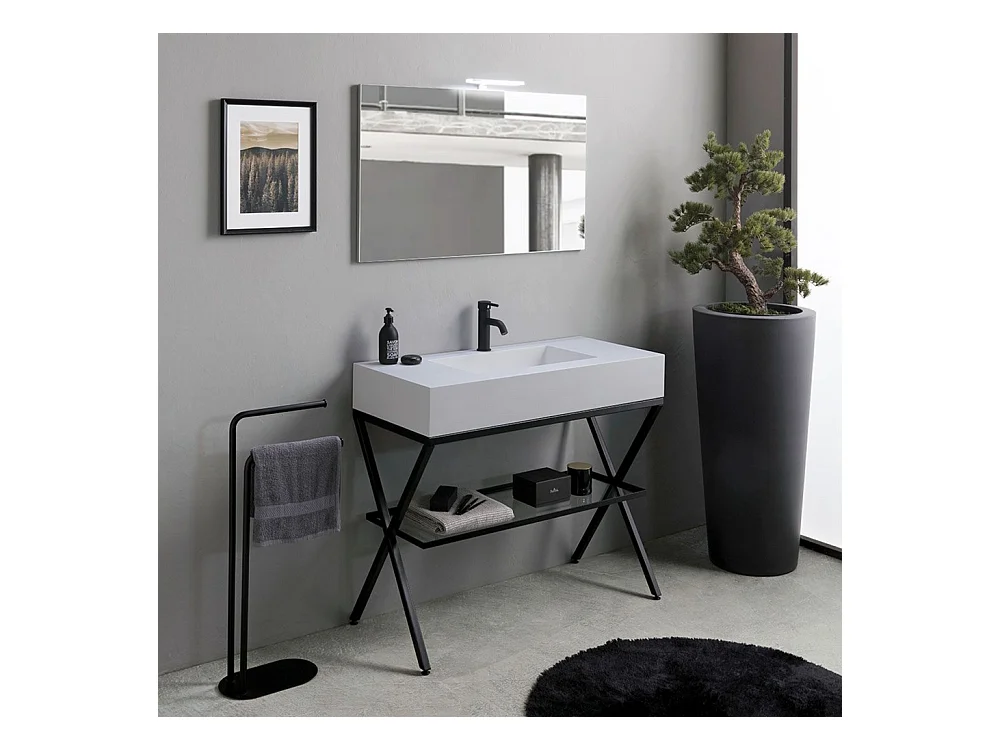 Meuble de salle de bain moderne blanc « Petra » sur pied avec miroir, lavabo et étagère en verre de 100 cm