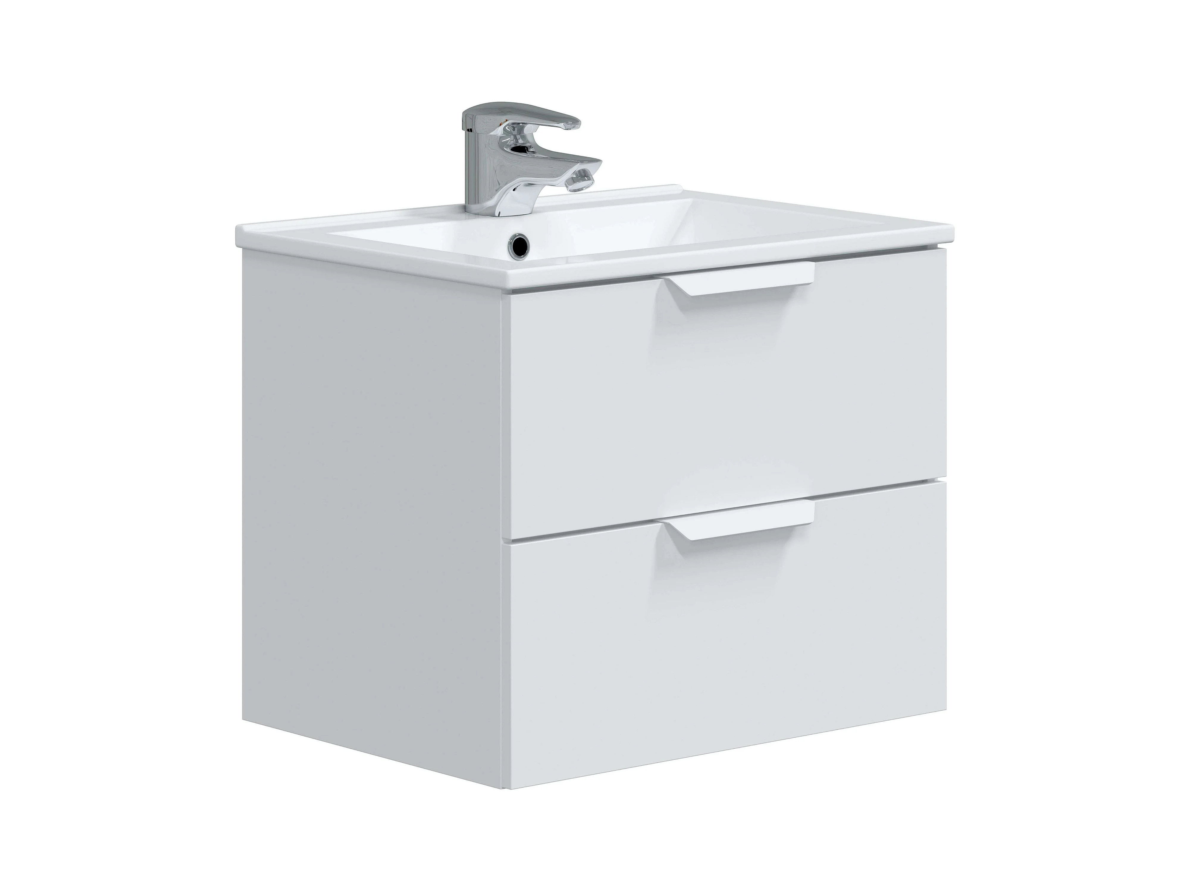 AICA Meuble de salle de bain avec vasque en céramique, 80cm,2 tiroirs,blanc - Meuble suspendu