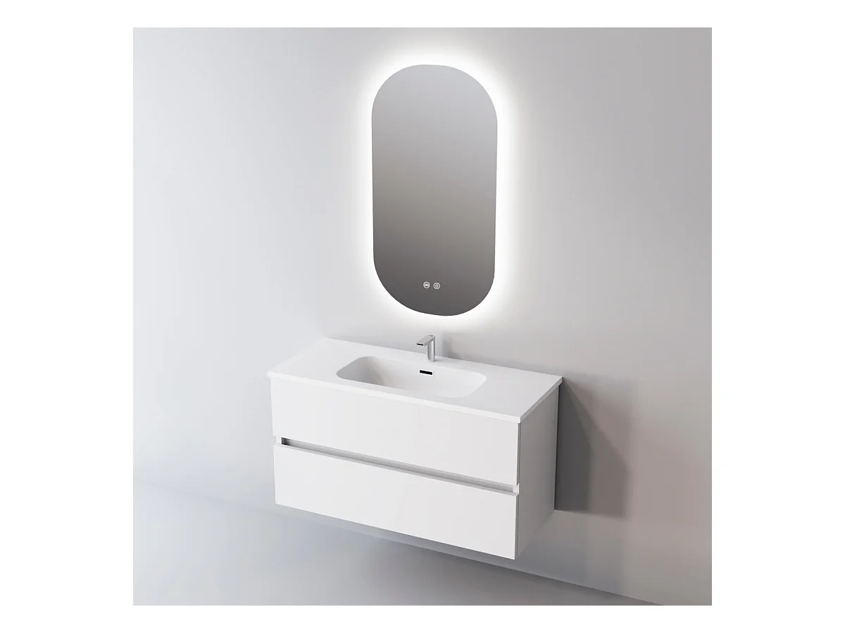 Meuble Salle de Bain ANCONA (81 cm x H54 x P45 cm), Plan Vasque Céramique WB, 2 Tiroirs, Blanc Brillant