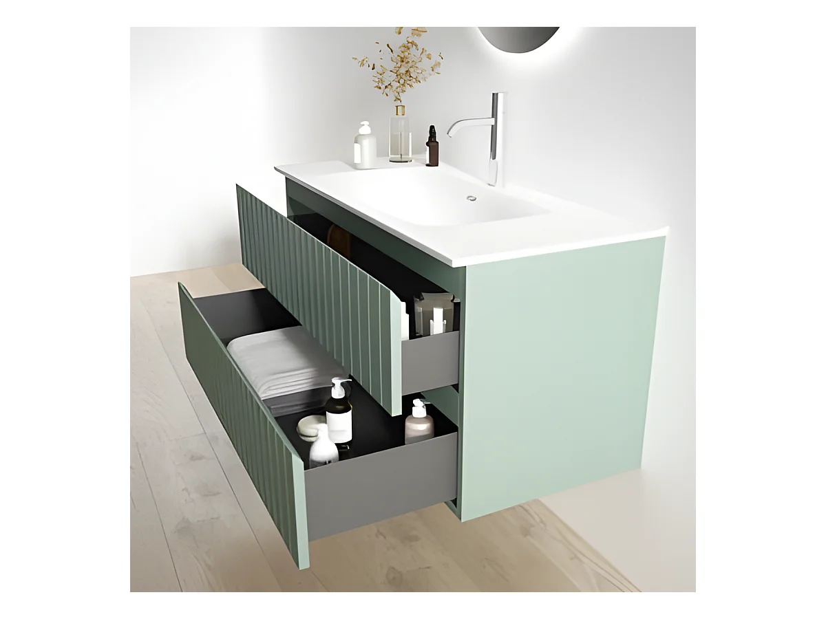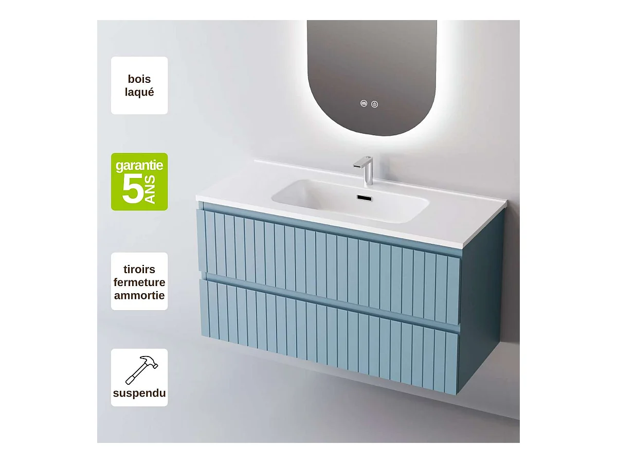 Meuble Salle de Bain GLOW (81 cm x H54 x P45 cm), Plan Vasque Céramique WB, 2 Tiroirs, Laqué Bleu Cobalt Mat