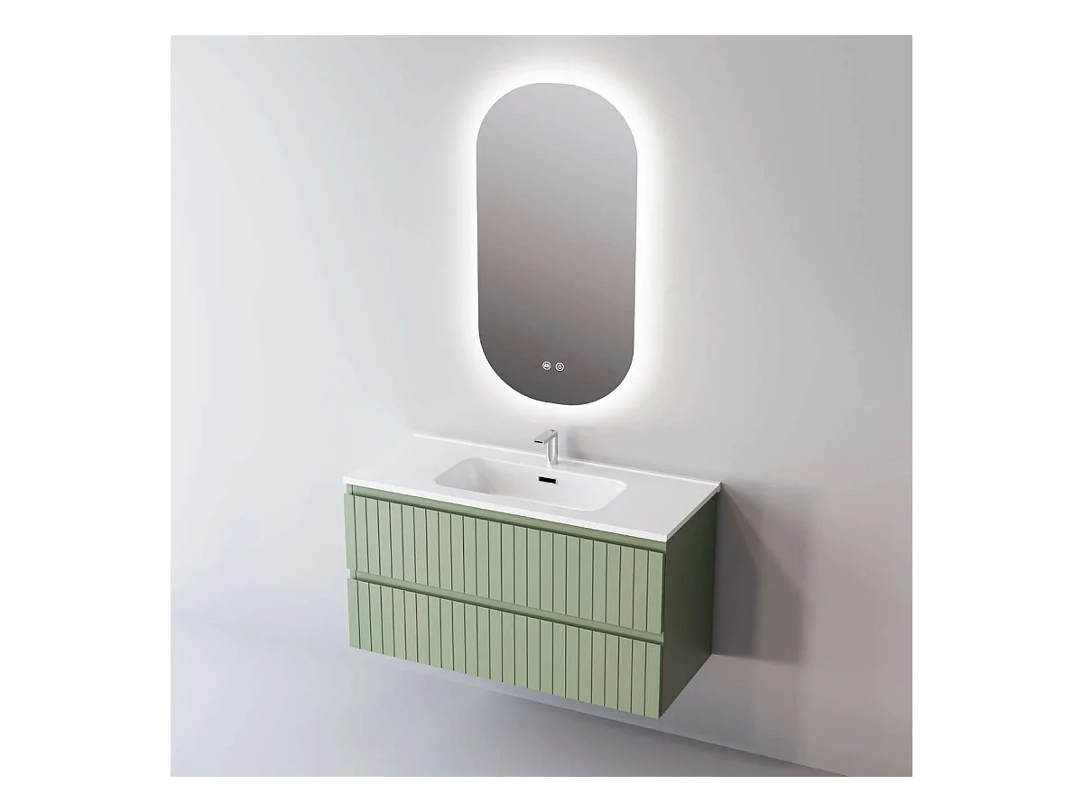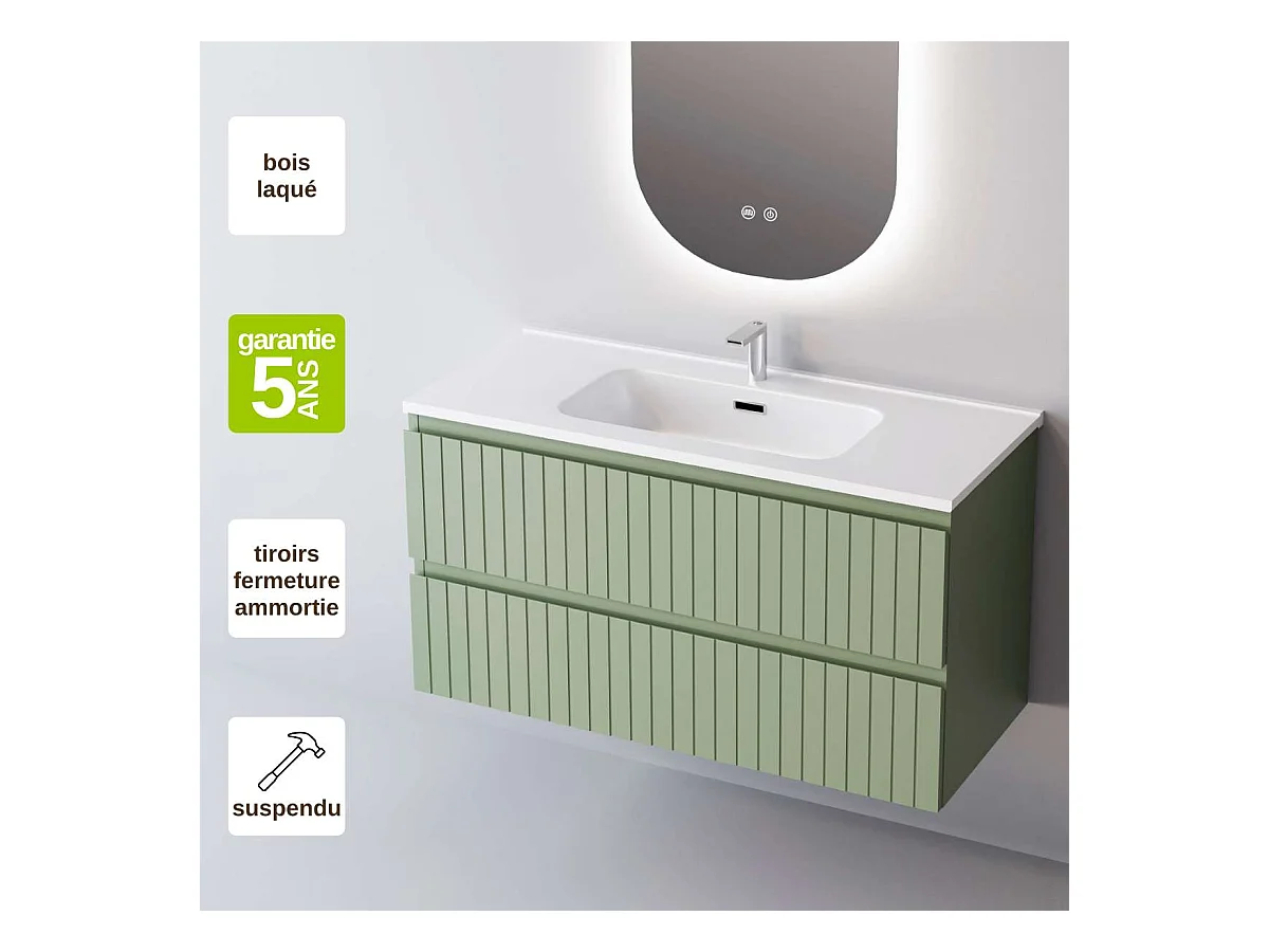 Meuble Salle de Bain GLOW (81 cm x H54 x P45 cm), Plan Vasque Céramique WB, 2 Tiroirs, Laqué Vert Mint Mat