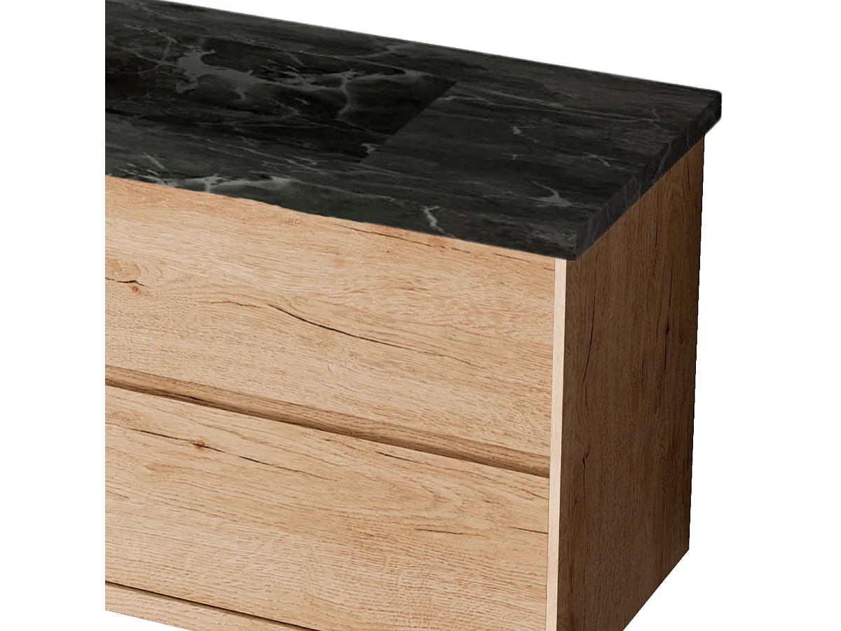 Meuble Salle de Bain COOL (61 cm x H54 x P45 cm), Plan Vasque Grès Cérame NA, 2 Tiroirs, Chêne Naturel