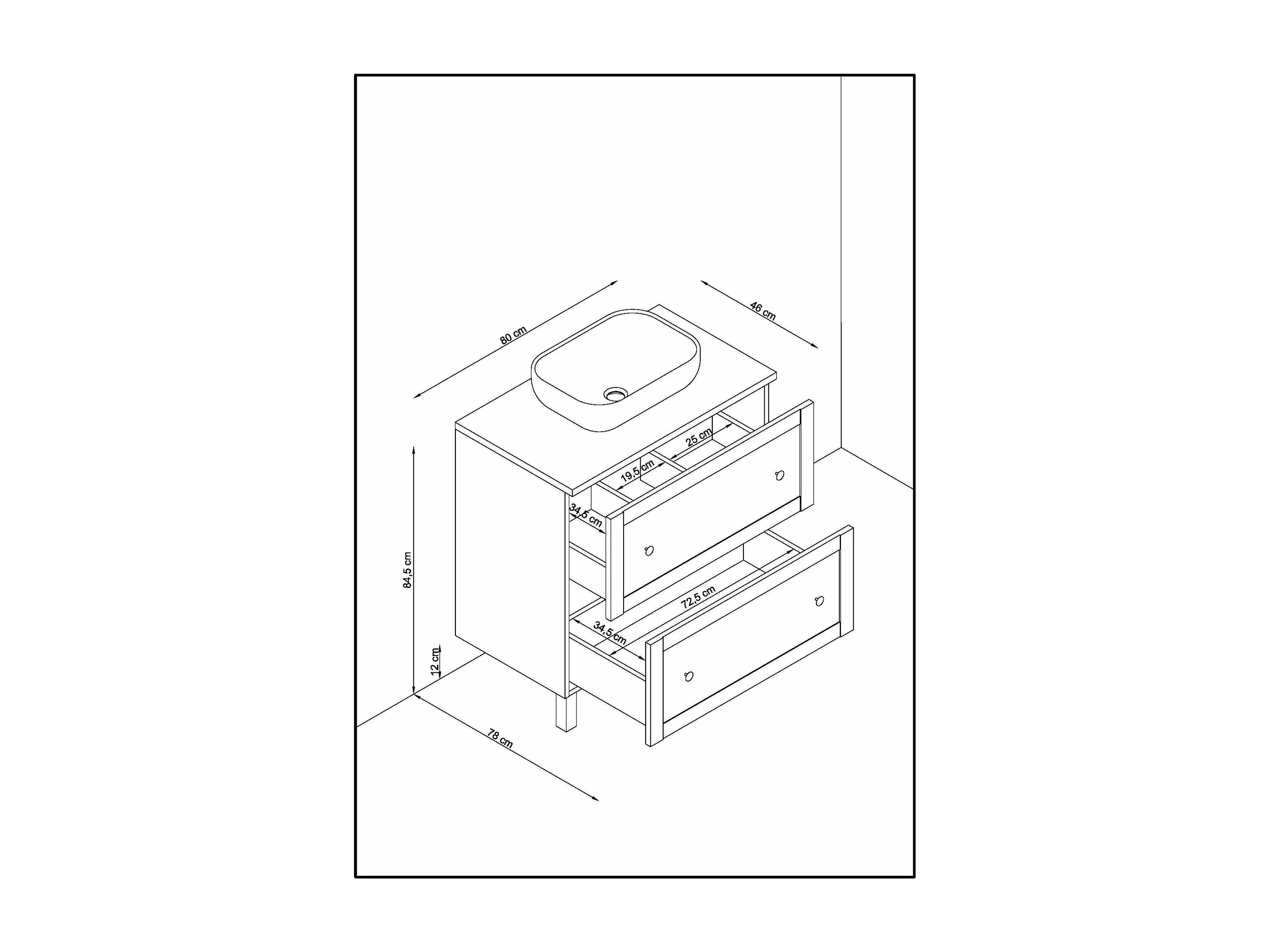 Meuble de salle de bain SAVAN 2 tiroirs 80 cm blanc T-BATH Inclus lavabo