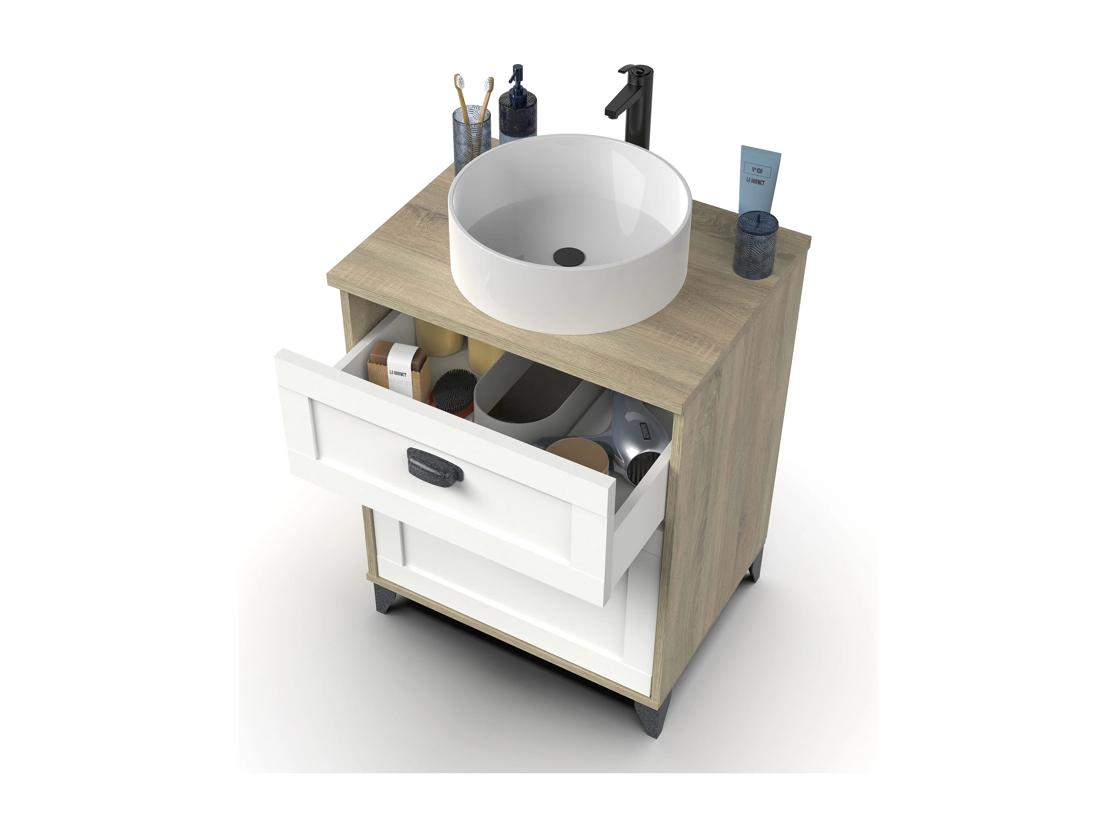 Meuble de salle de bain sous-vasque coloris Blanc/chêne cambrien (lavabo non inclus) - Longueur 61 x Profondeur 47 x Hauteur 80 cm