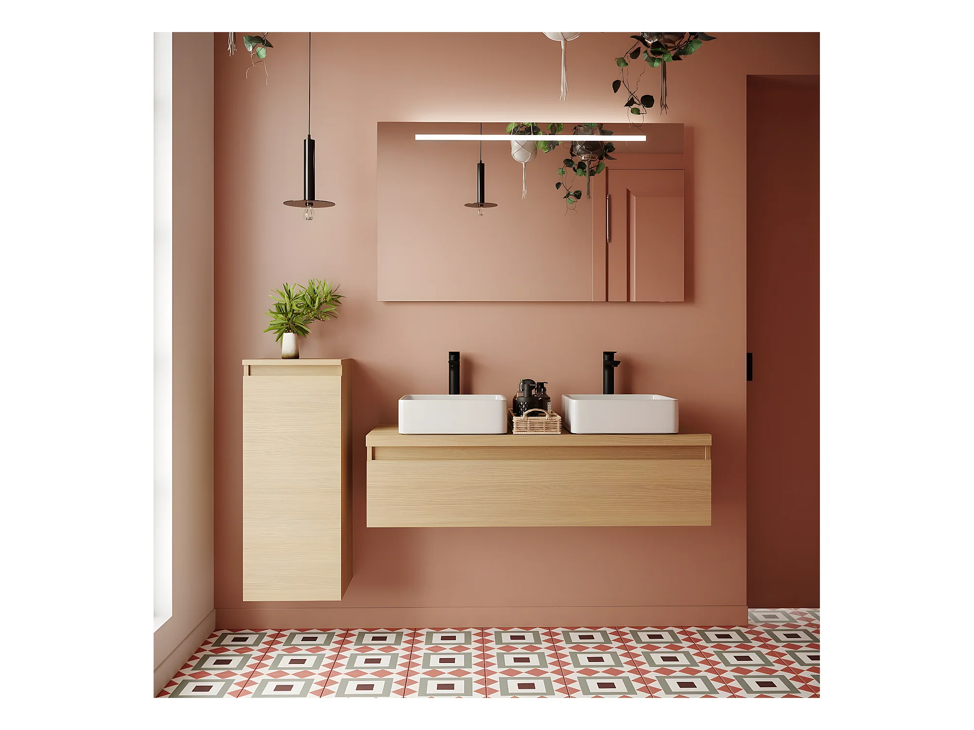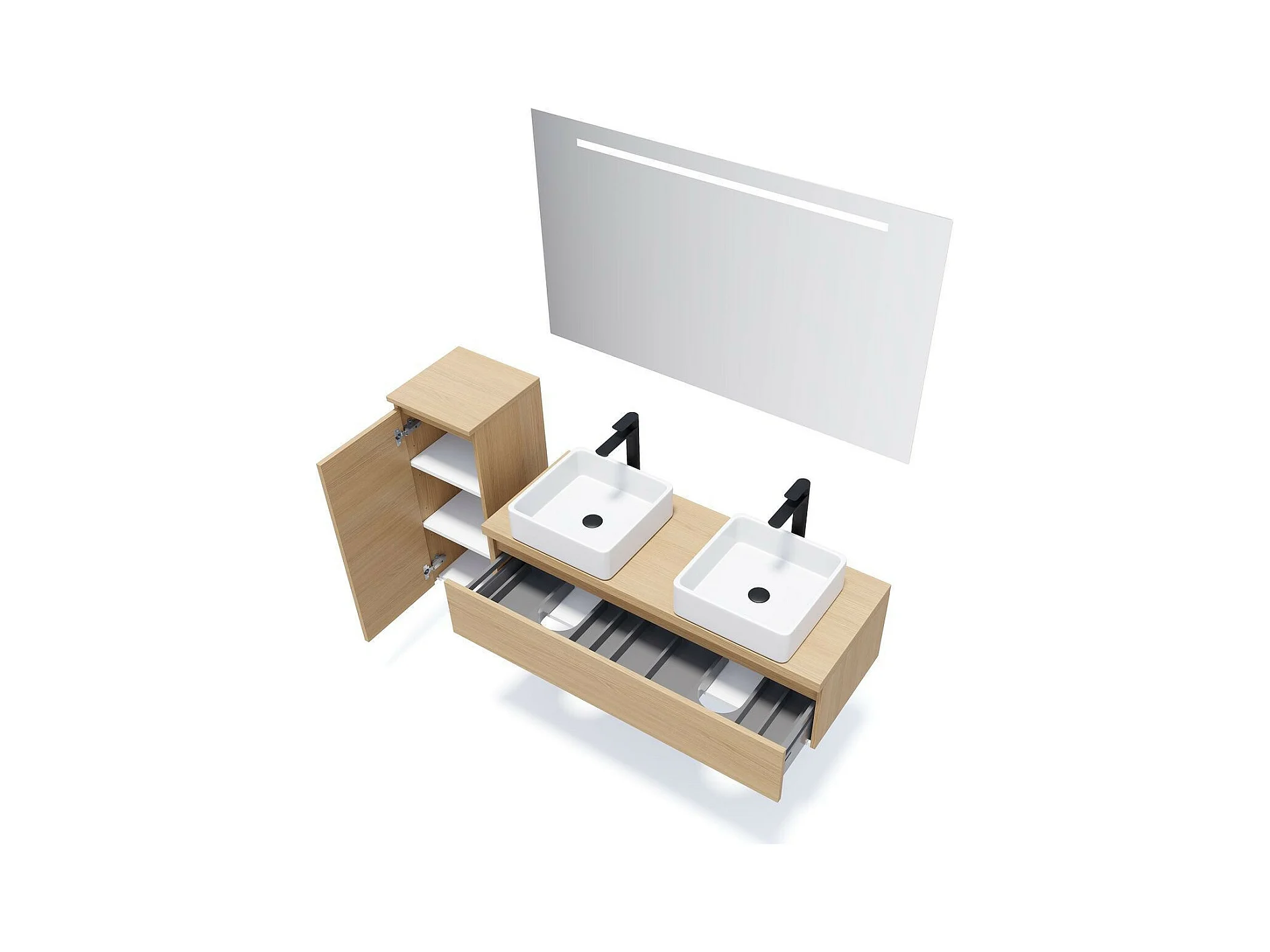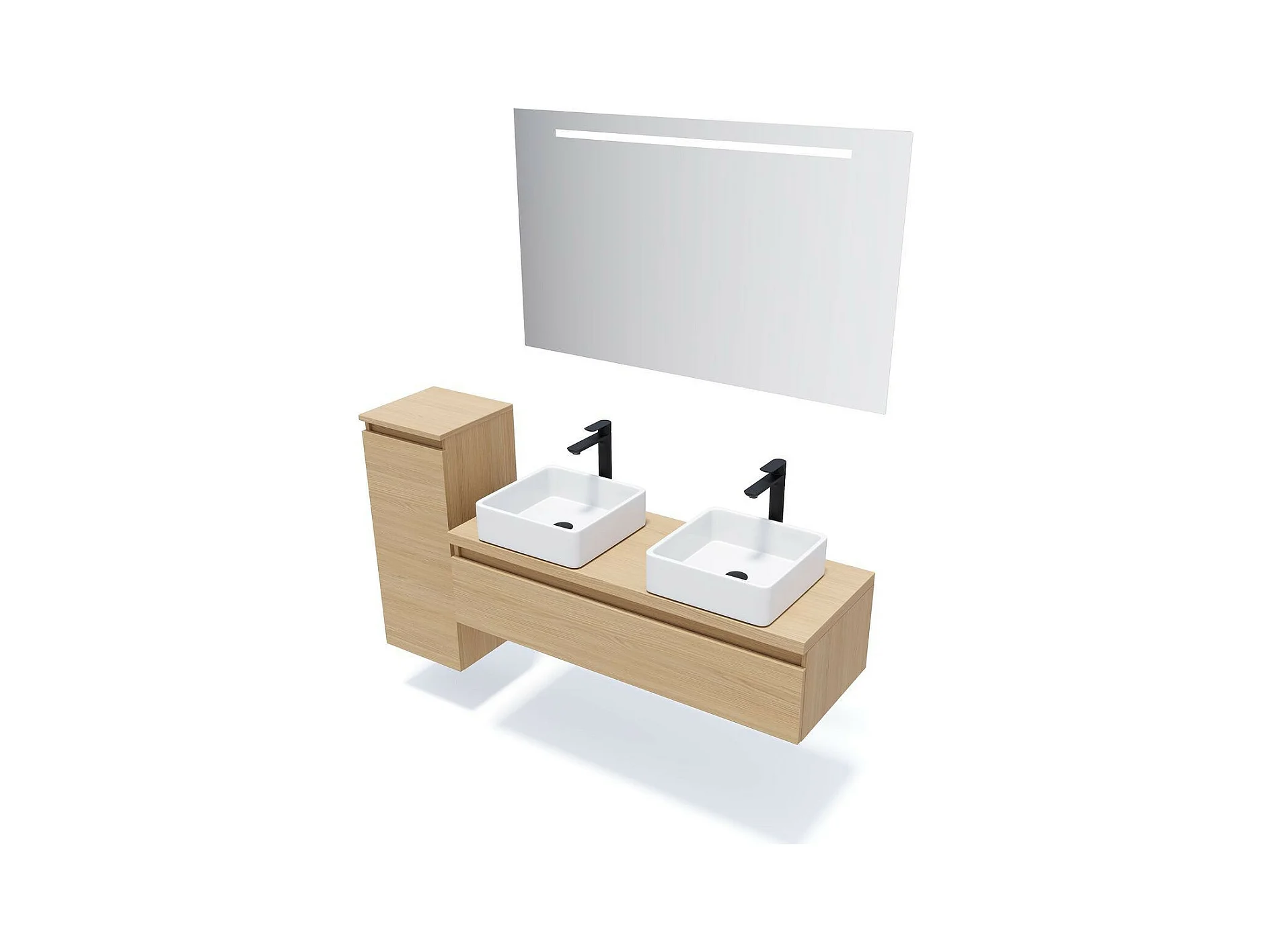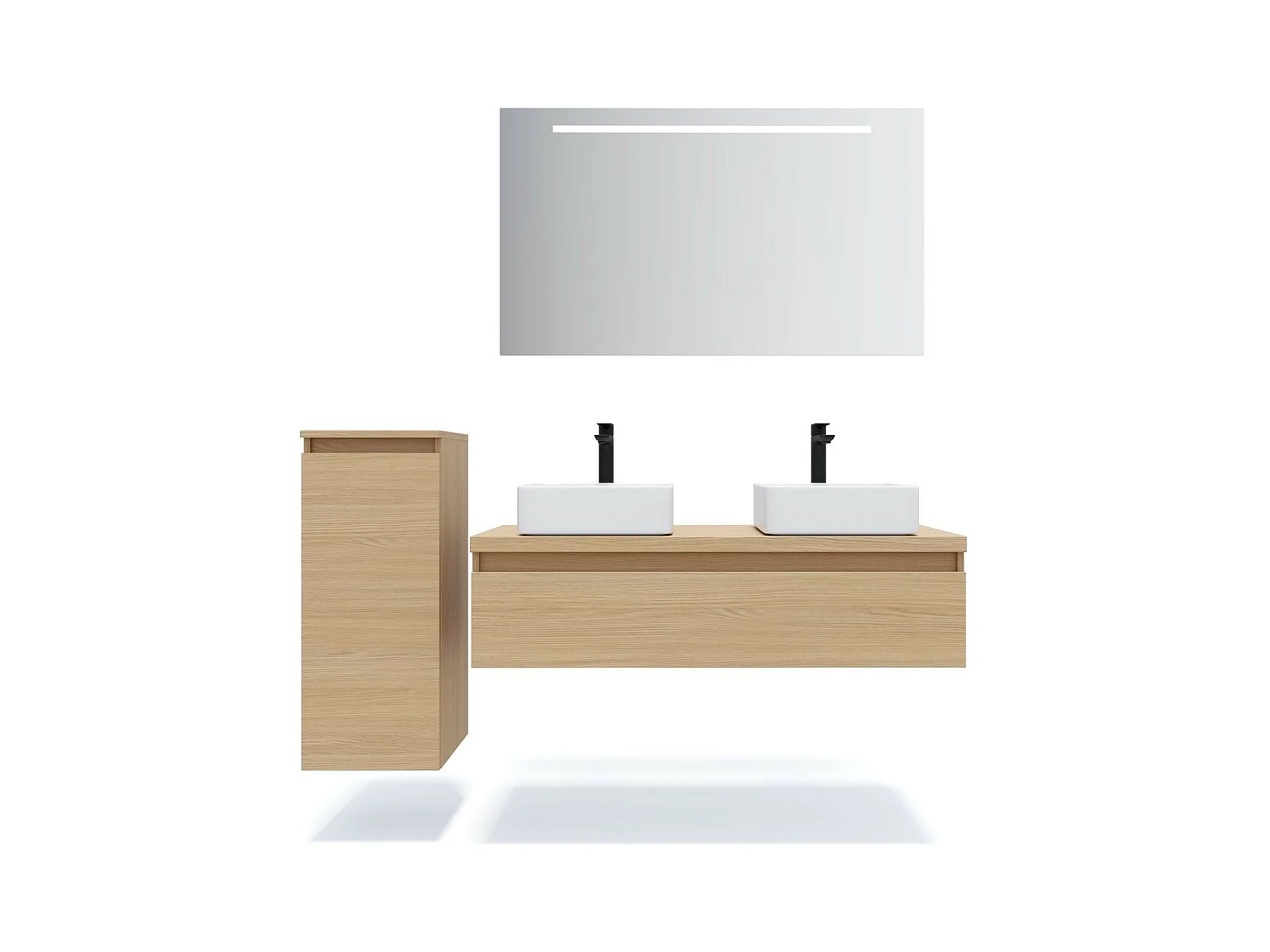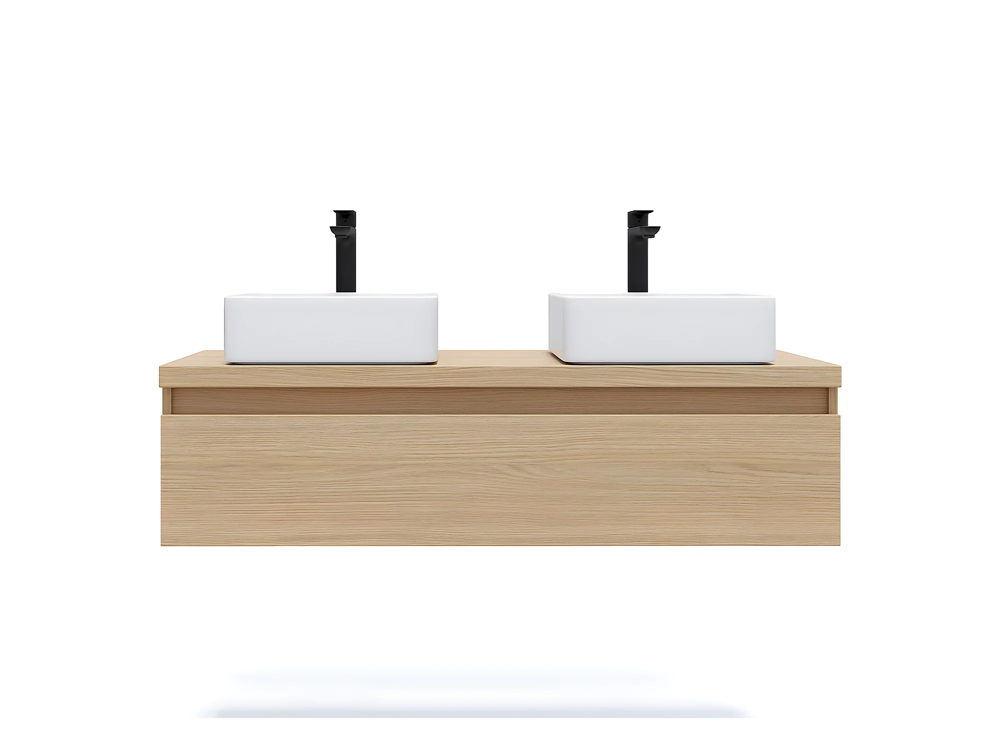 Meuble de salle de bain suspendu 2 vasques à poser 120cm 1 tiroir Chêne clair - Hudson