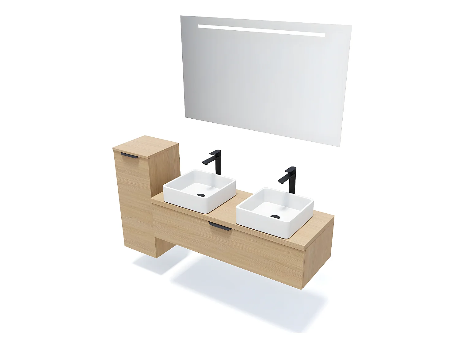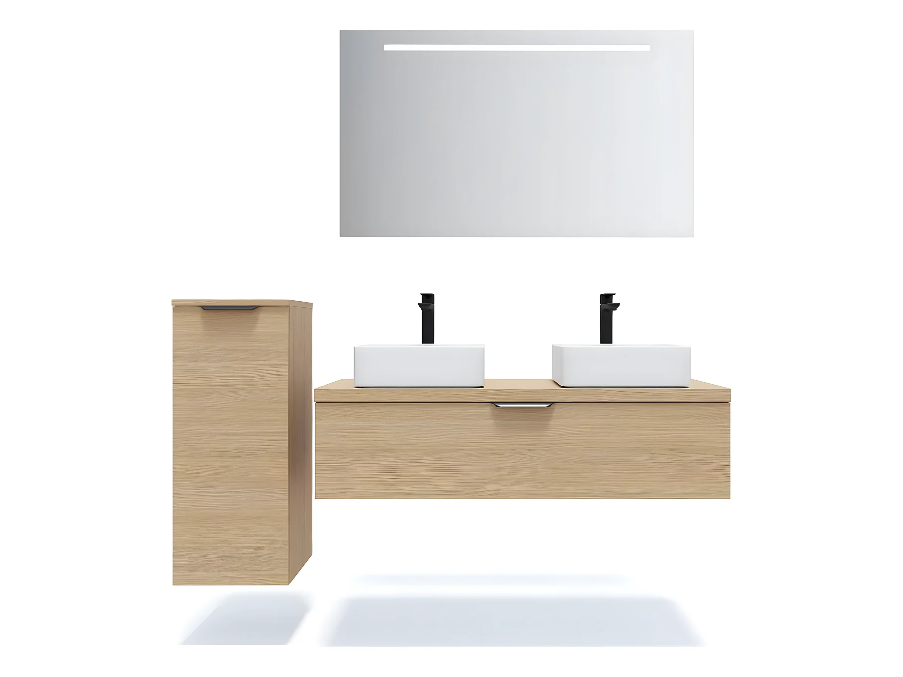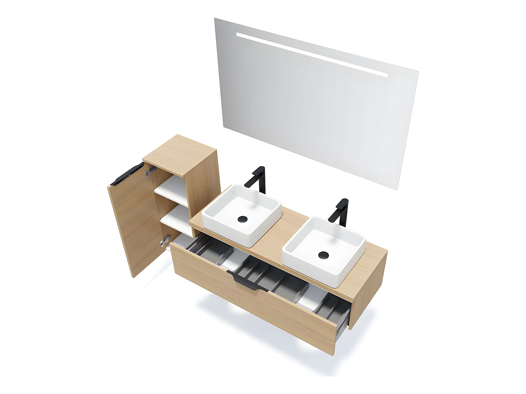 Meuble de salle de bain suspendu 2 vasques à poser 120cm 1 tiroir Chêne clair - Venice
