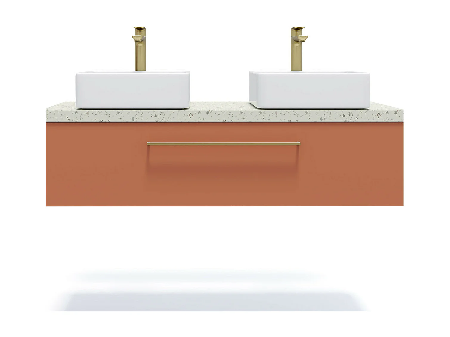 Meuble de salle de bain suspendu 2 vasques à poser 120cm 1 tiroir Terracotta - Glasgow