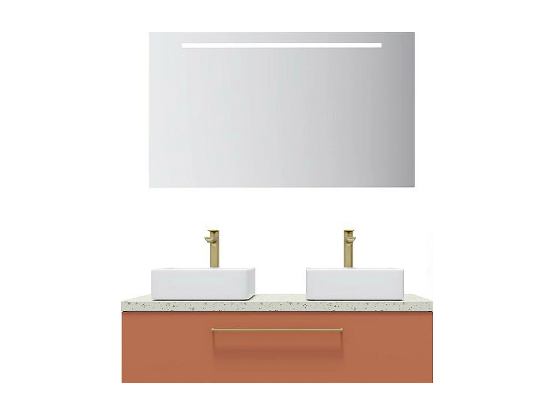 Meuble de salle de bain suspendu 2 vasques à poser 120cm 1 tiroir Terracotta + miroir - Glasgow