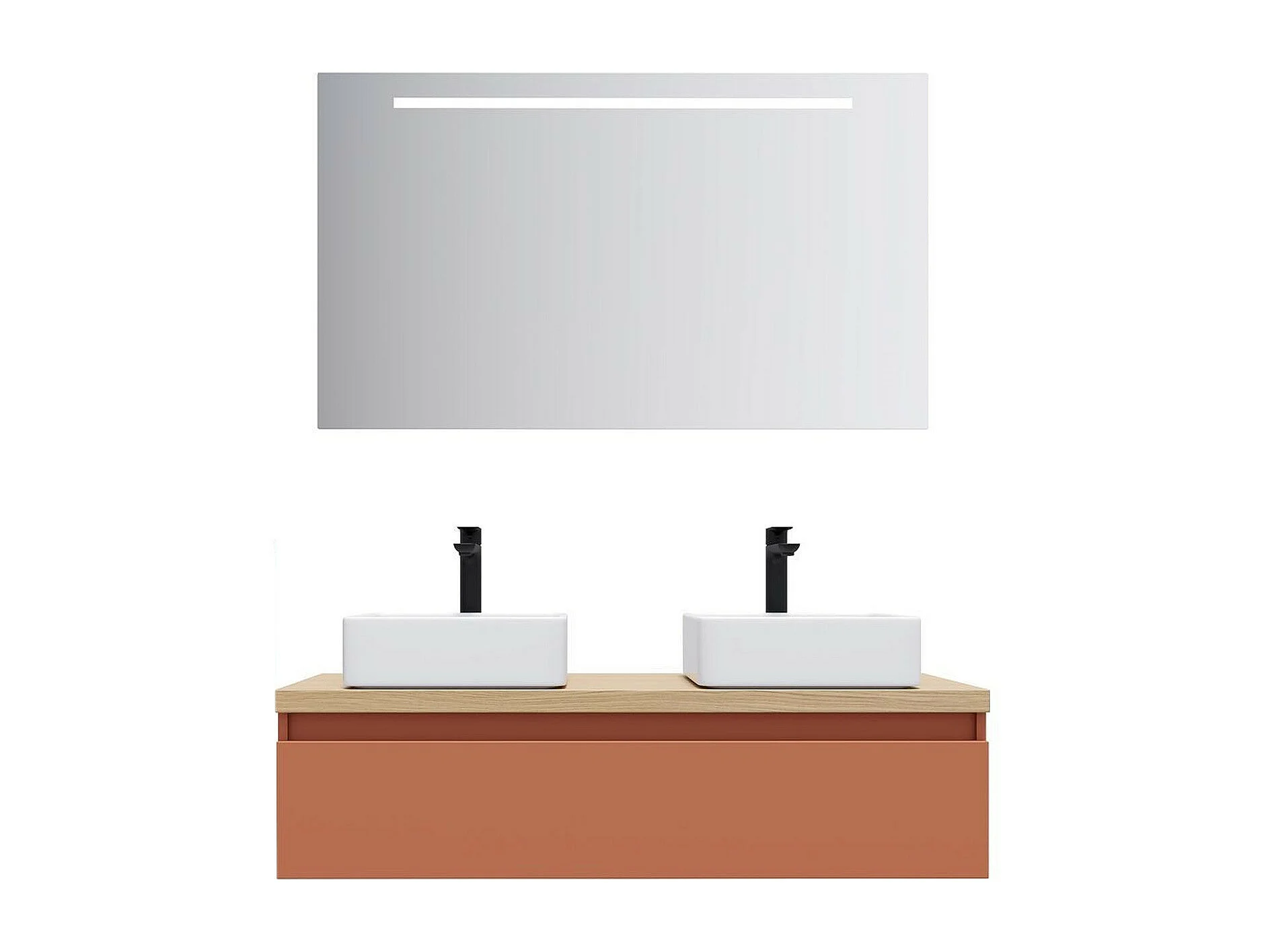Meuble de salle de bain suspendu 2 vasques à poser 120cm 1 tiroir Terracotta + miroir - Hudson