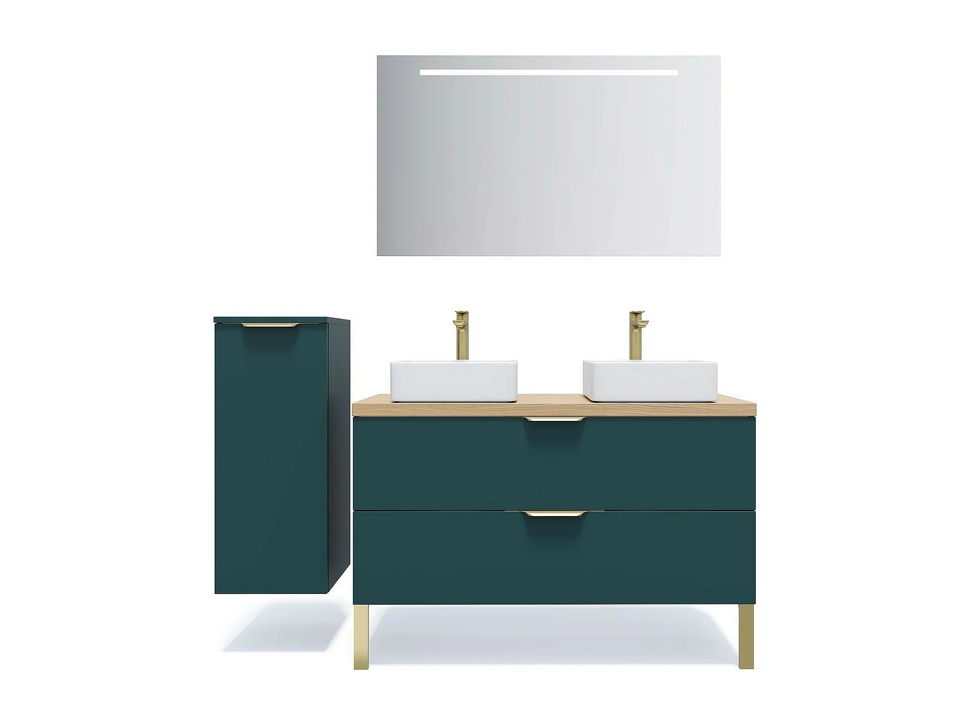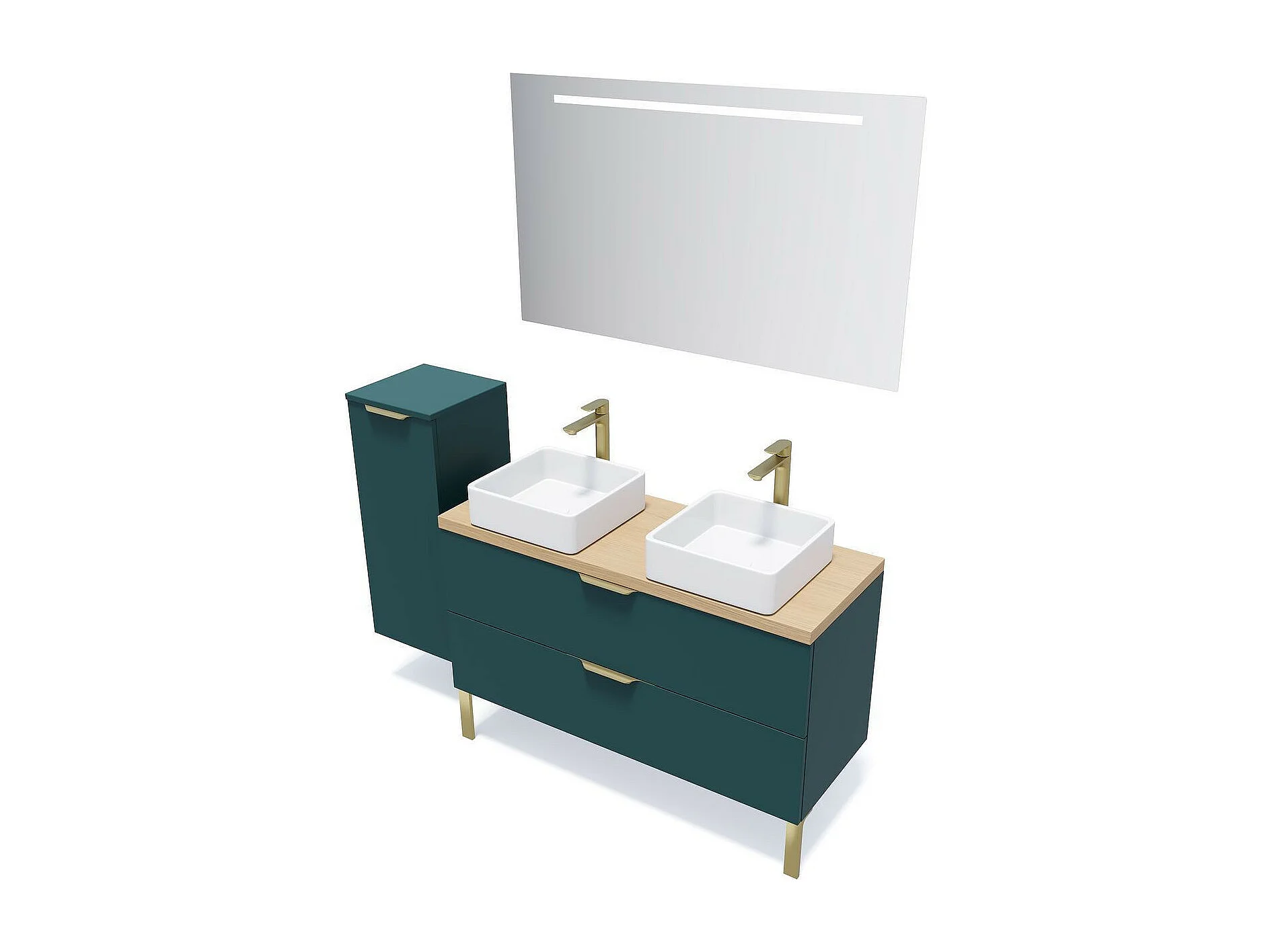 Meuble de salle de bain suspendu 2 vasques à poser 120cm 2 tiroirs Bleu + miroir - Venice