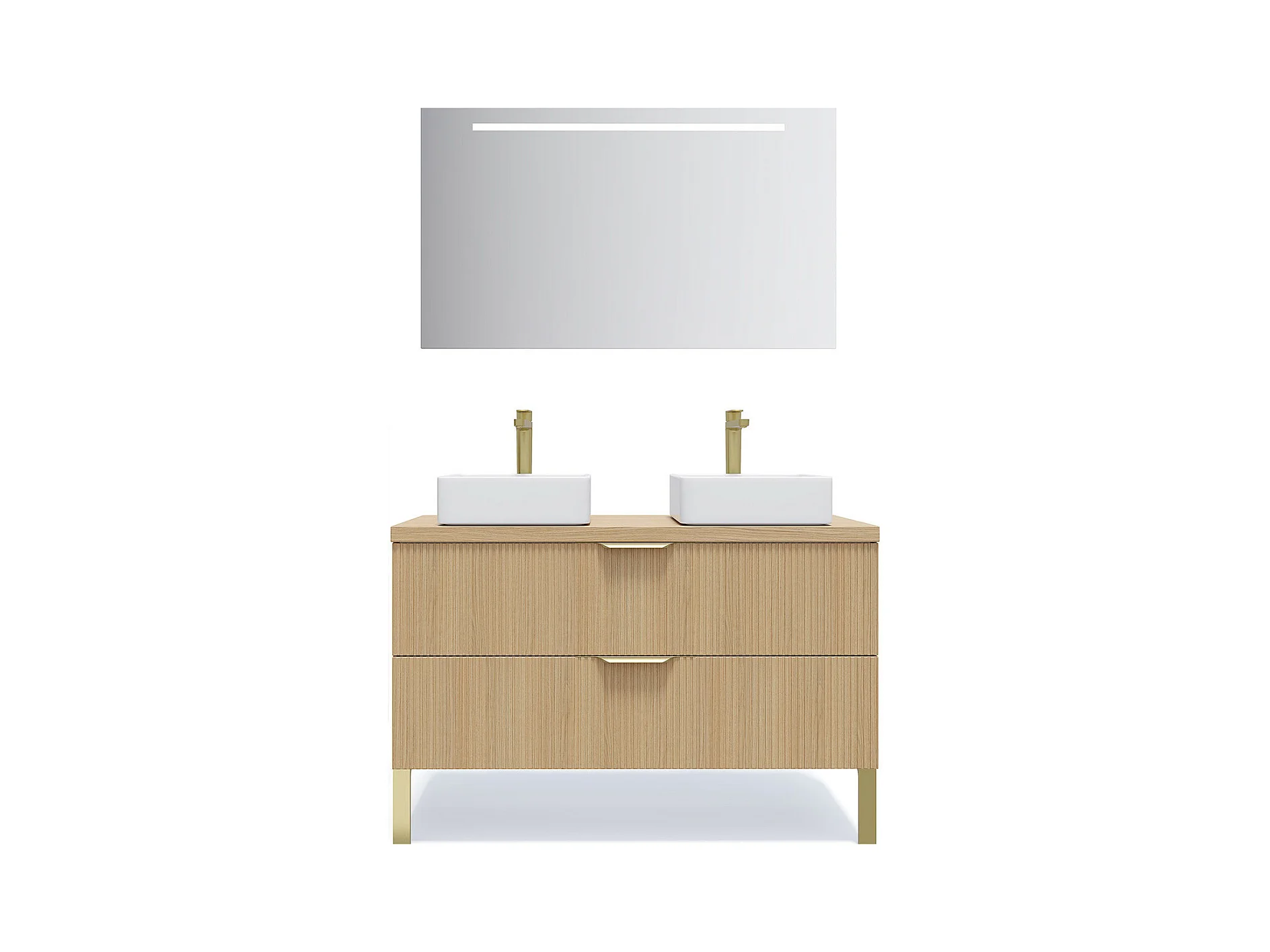 Meuble de salle de bain suspendu 2 vasques à poser 120cm 2 tiroirs Chêne cannelé + miroir - Venice