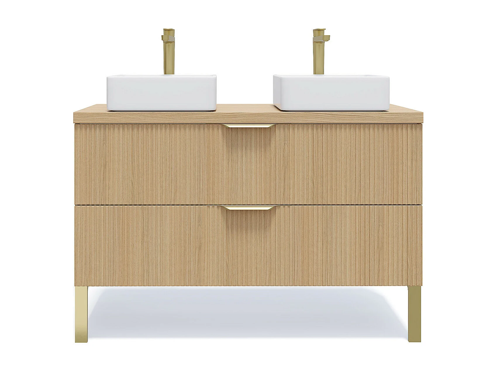 Meuble de salle de bain suspendu 2 vasques à poser 120cm 2 tiroirs Chêne cannelé - Venice
