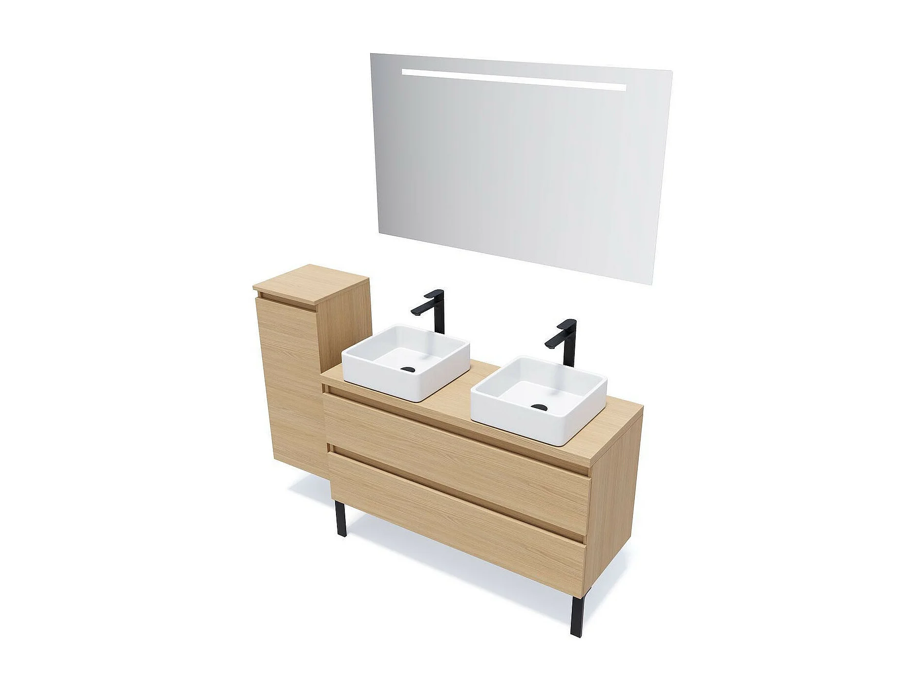 Meuble de salle de bain suspendu 2 vasques à poser 120cm 2 tiroirs Chêne clair + miroir - Hudson