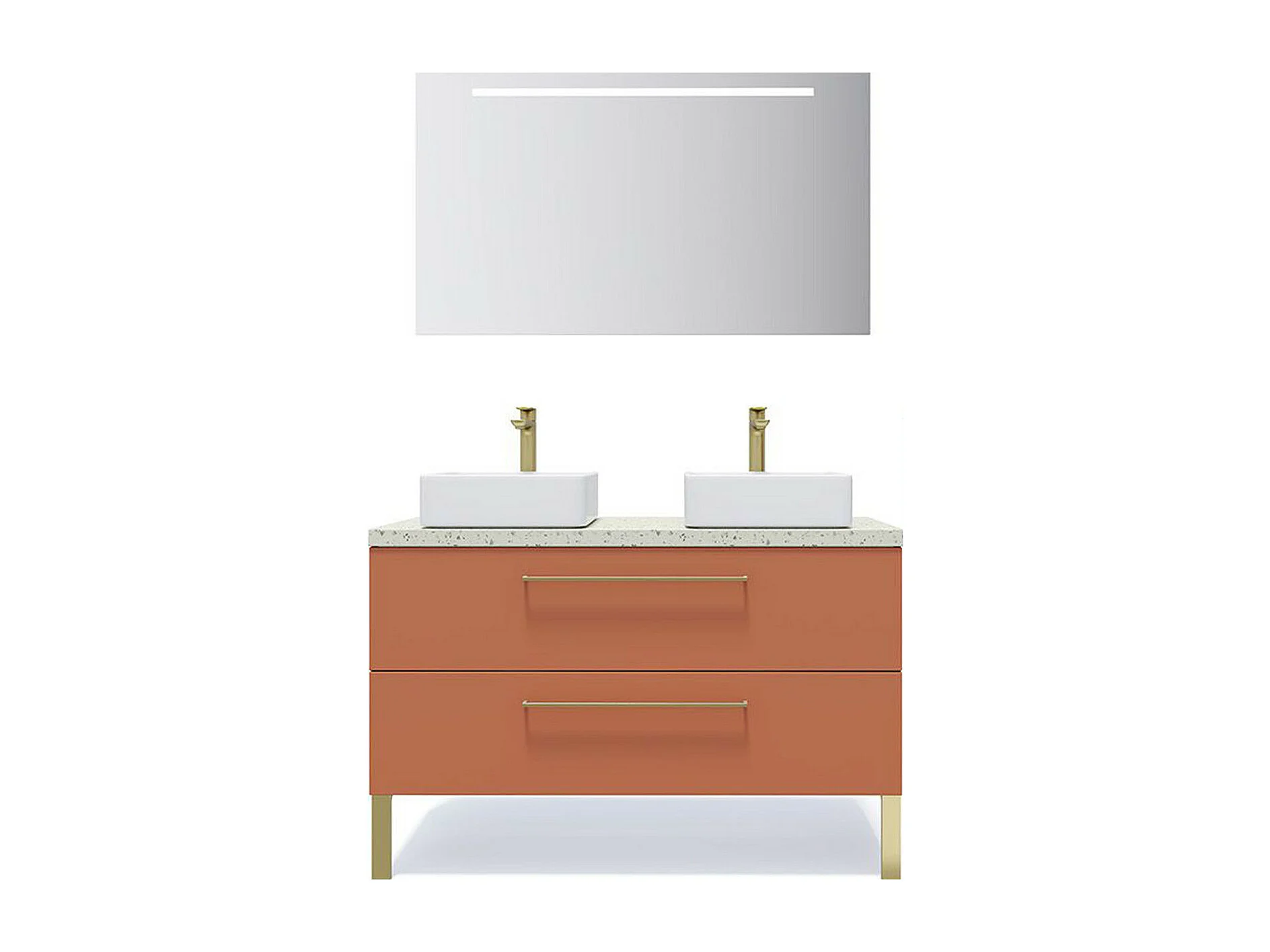 Meuble de salle de bain suspendu 2 vasques à poser 120cm 2 tiroirs Terracotta + miroir - Glasgow
