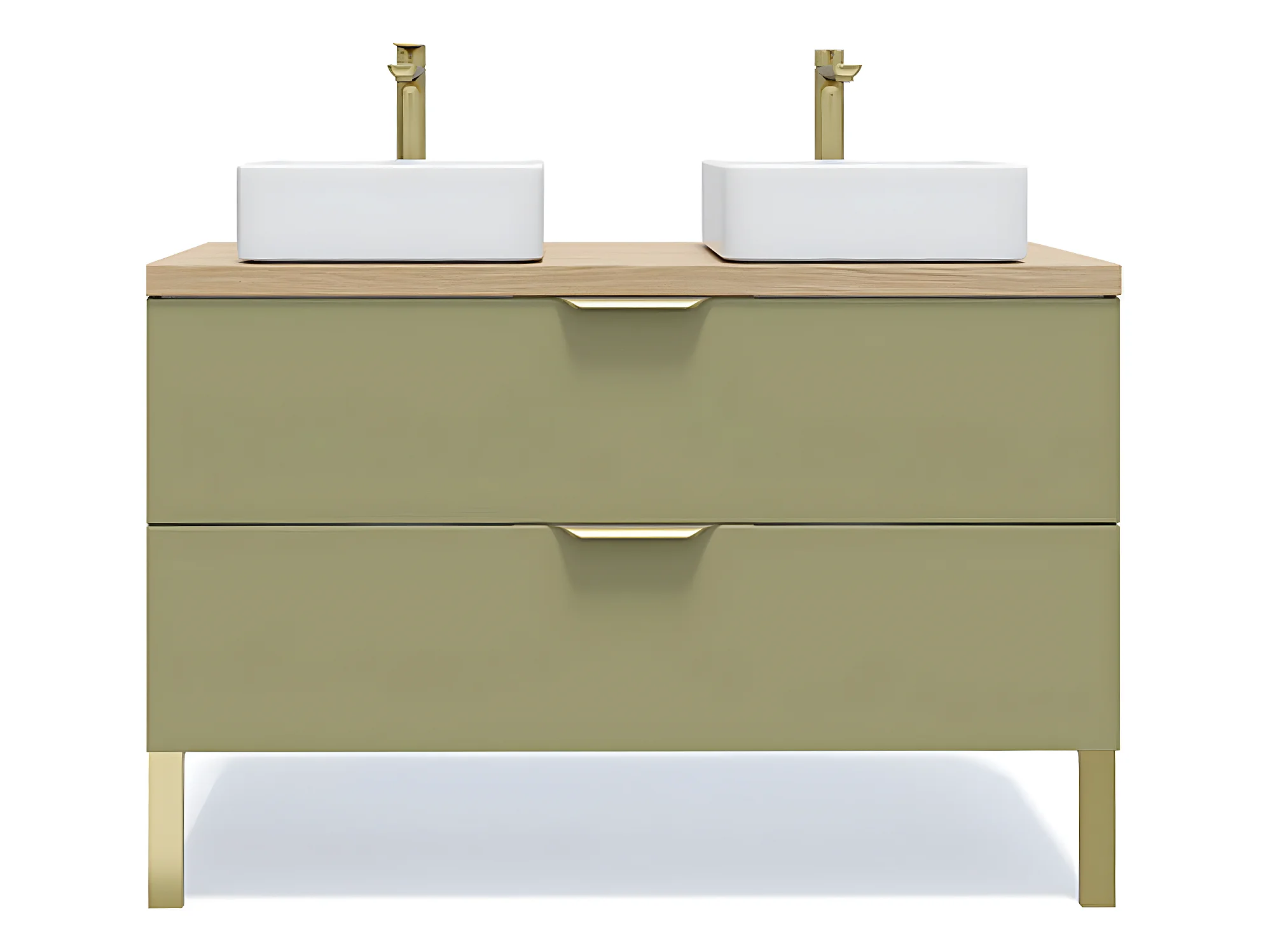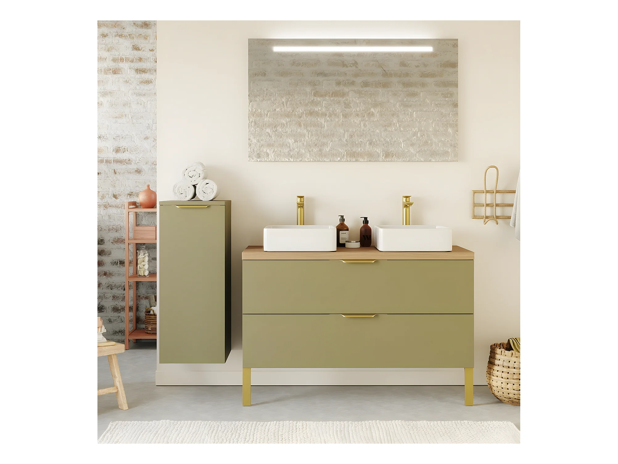 Meuble de salle de bain suspendu 2 vasques à poser 120cm 2 tiroirs Vert olive - Venice