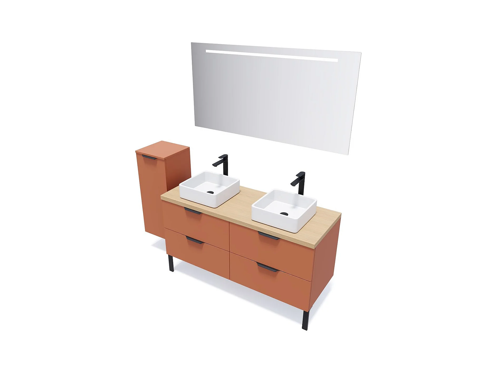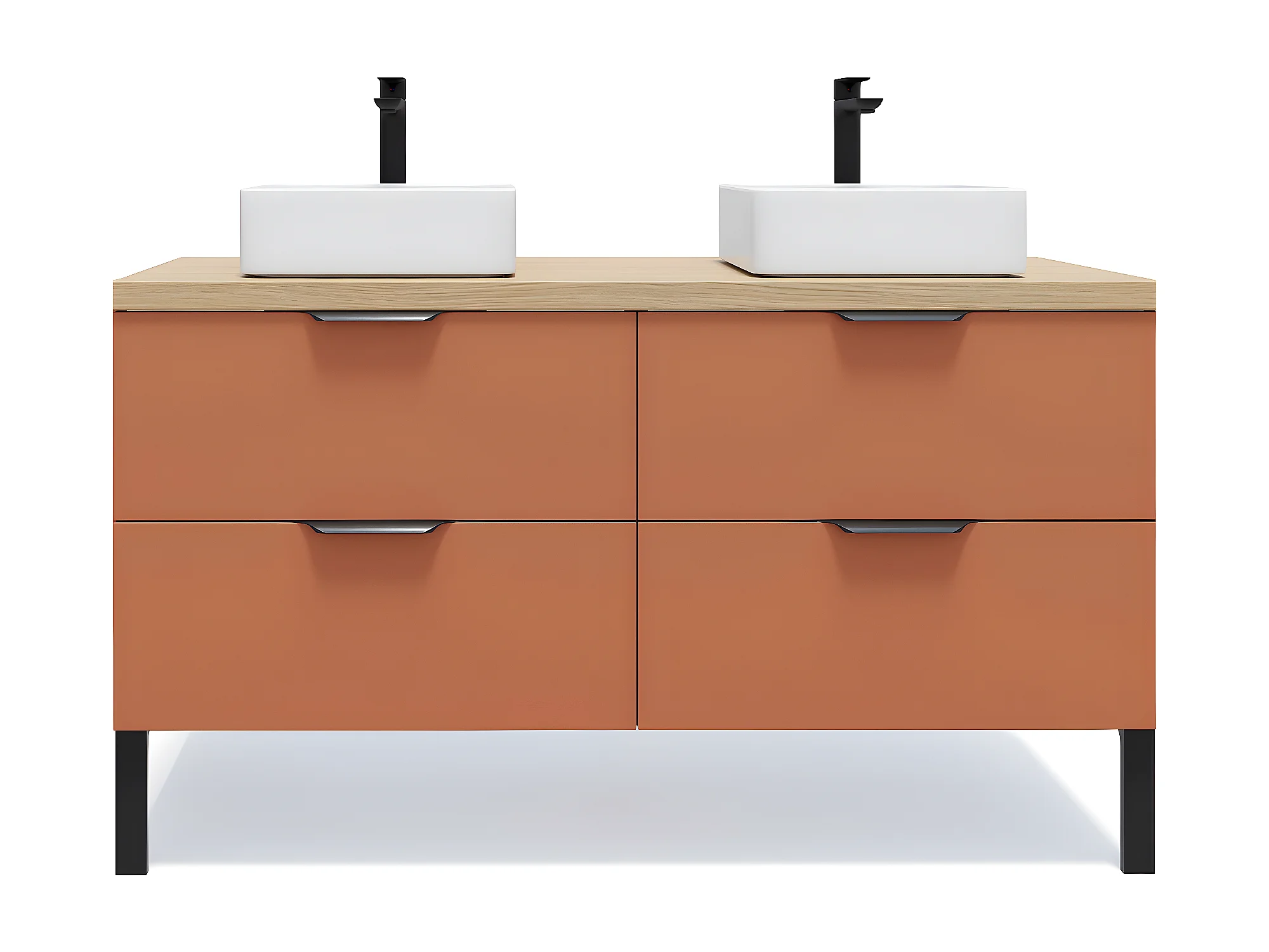 Meuble de salle de bain suspendu 2 vasques à poser 140cm 4 tiroirs Terracotta - Soho