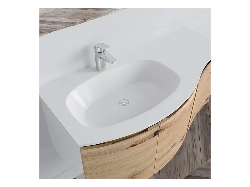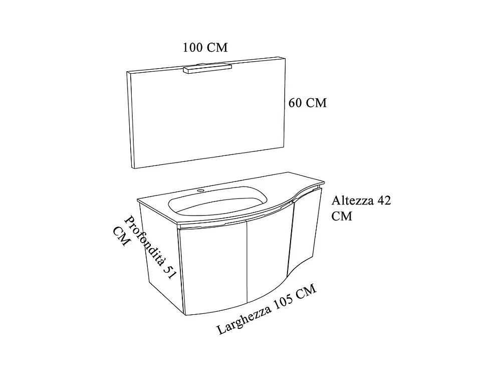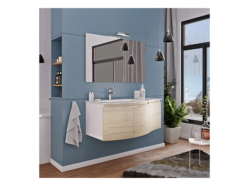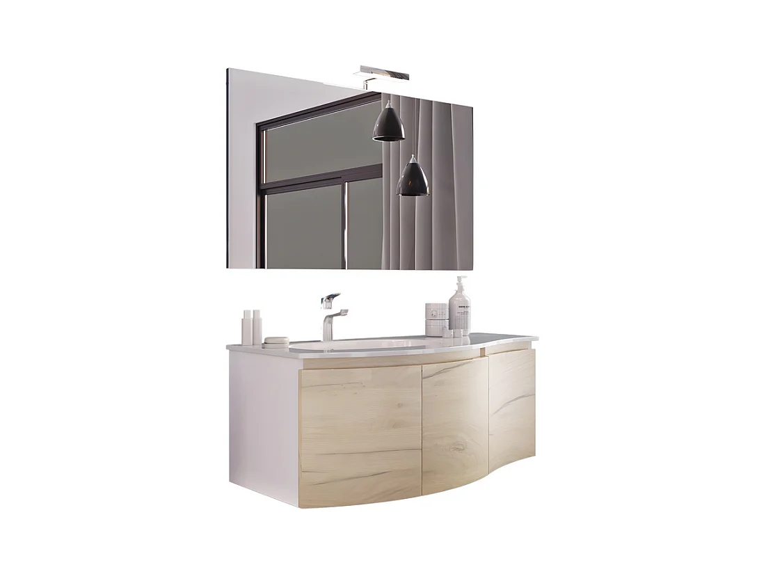 Meuble de salle de bain suspendu 3 portes "Malani" en chêne fumé avec miroir LED et lavabo intégré cm 105x50 55h