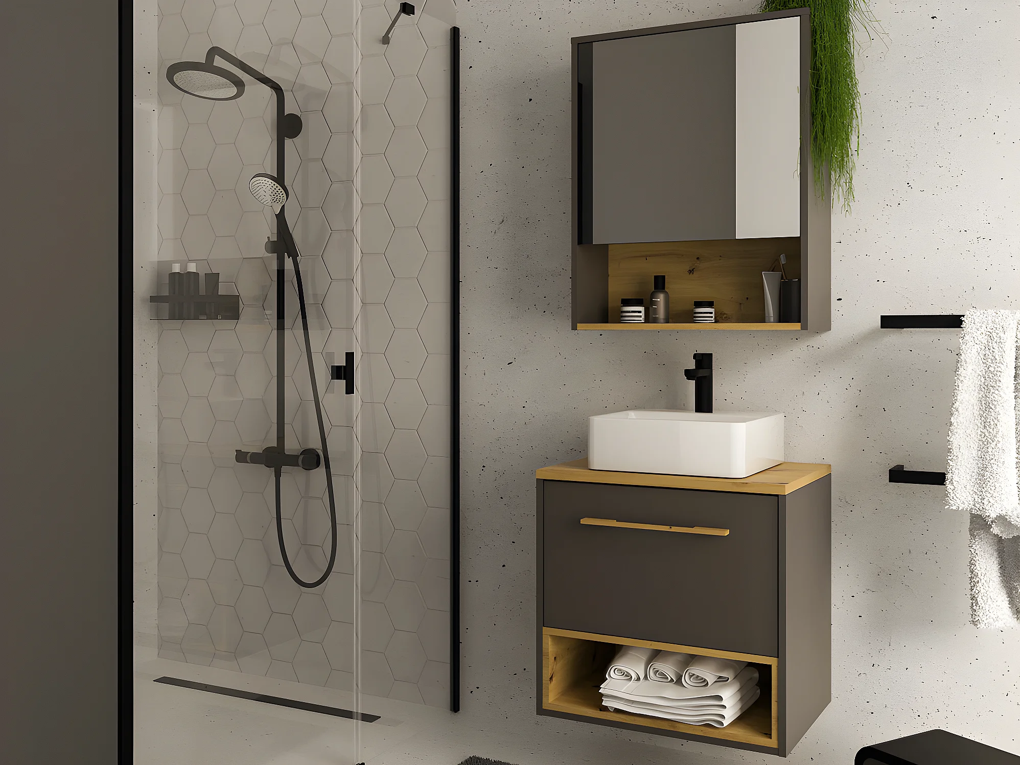 Meuble de salle de bain suspendu anthracite avec vasque à poser et armoire de toilette - 60 cm - YANGRA
