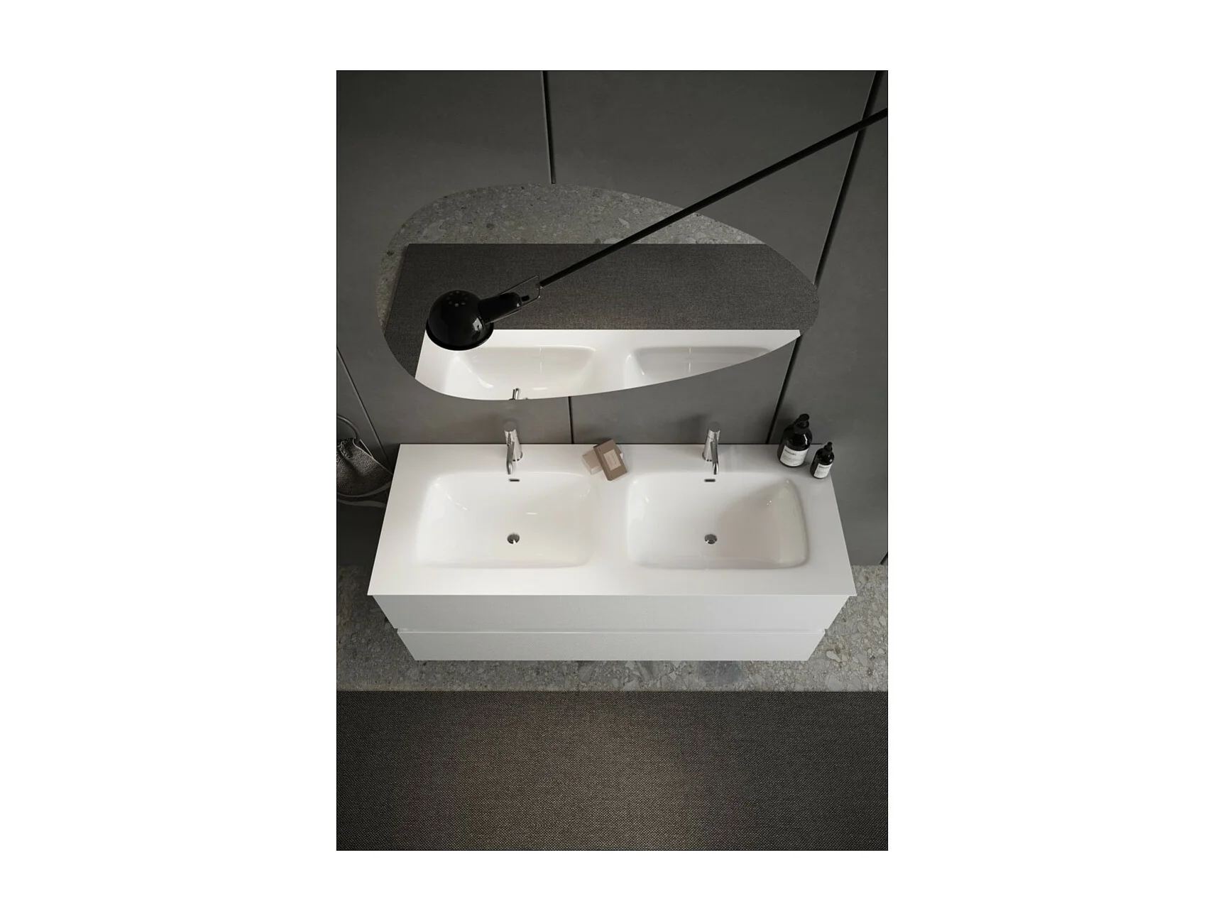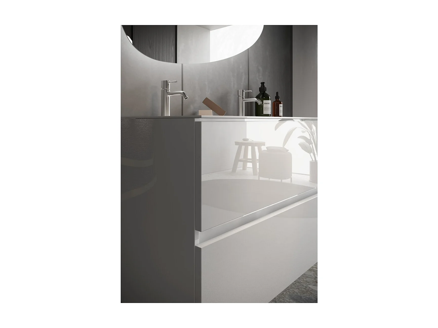 Meuble de salle de bain suspendu avec deux vasques et 2 tiroirs, collection VIENNE. Coloris blanc brillant