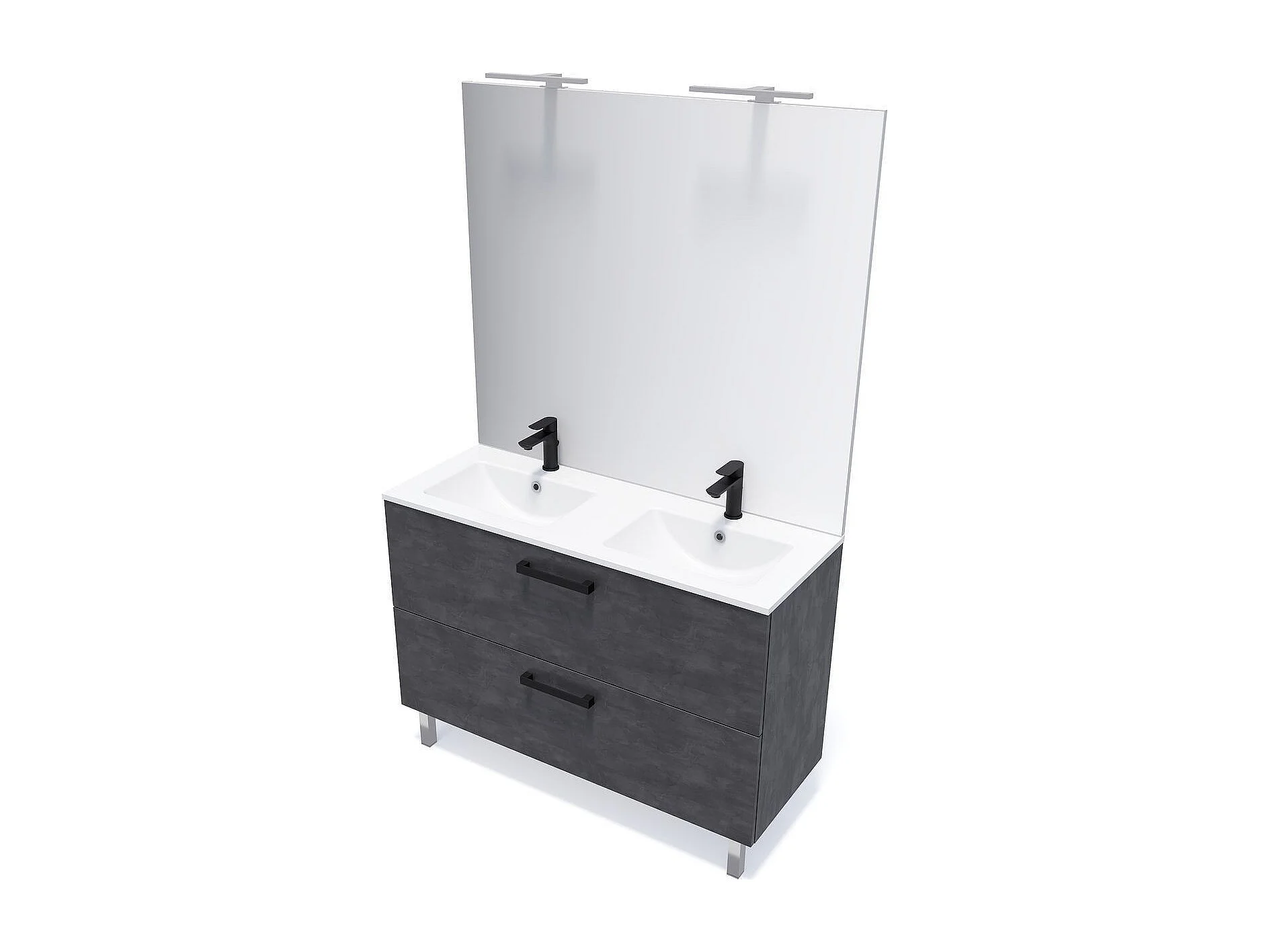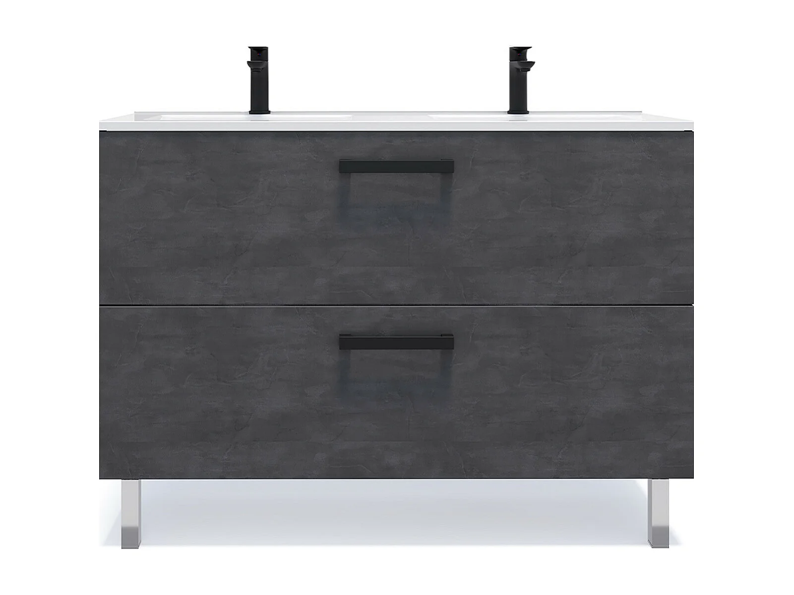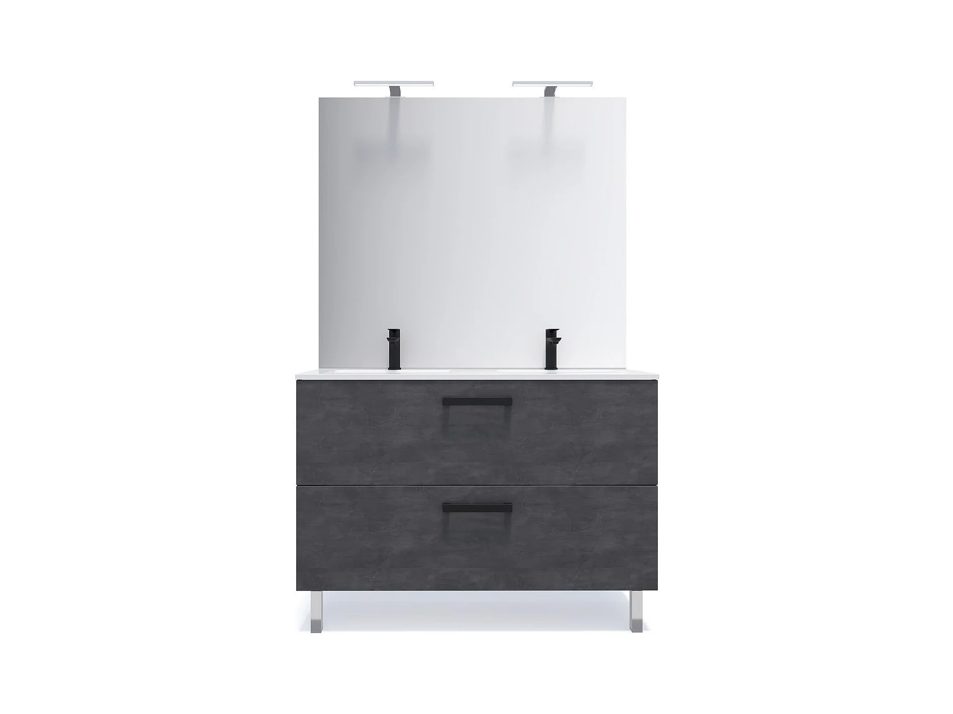 Meuble de salle de bain suspendu avec pieds double vasque intégrée 120cm 2 tiroirs Ardoise métallisée - Chelsea