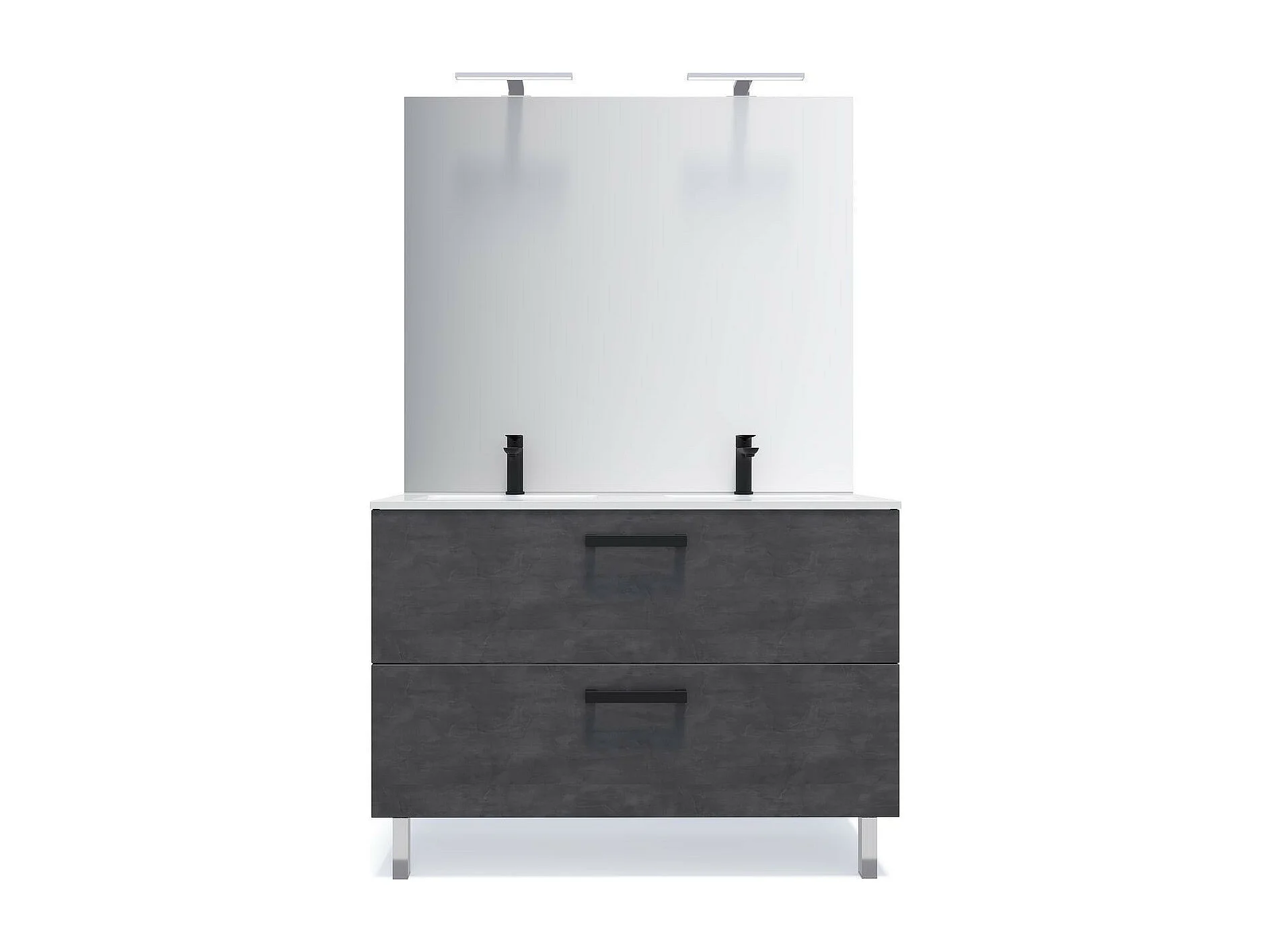 Meuble de salle de bain suspendu avec pieds double vasque intégrée 120cm 2 tiroirs Ardoise métallisée + miroir - Chelsea