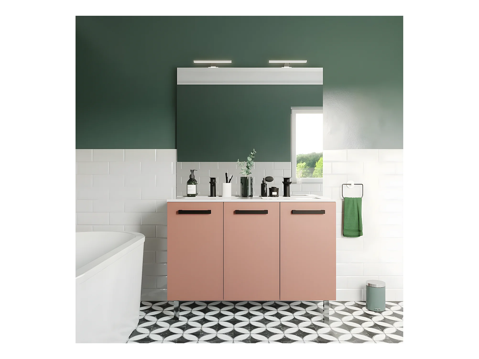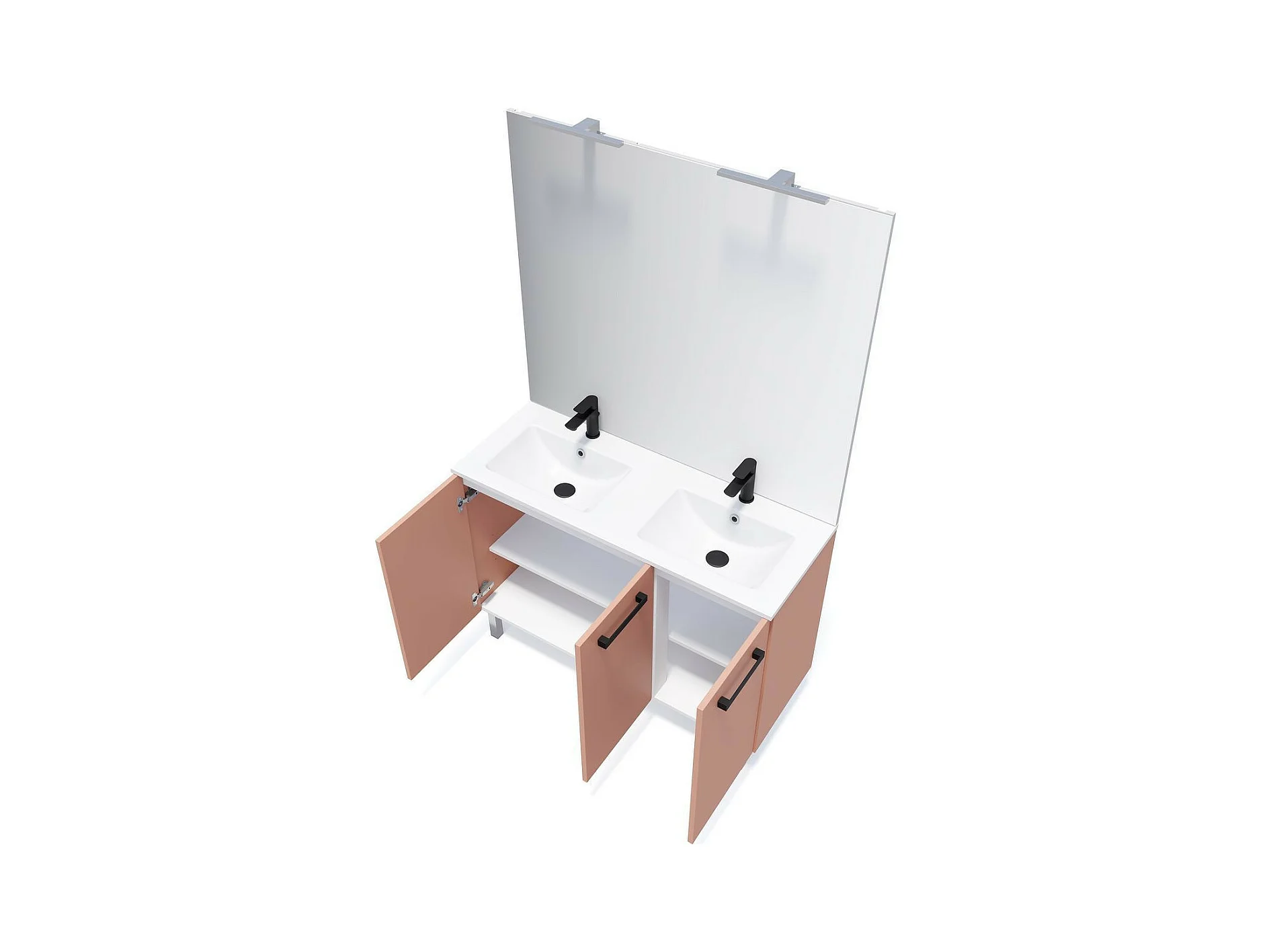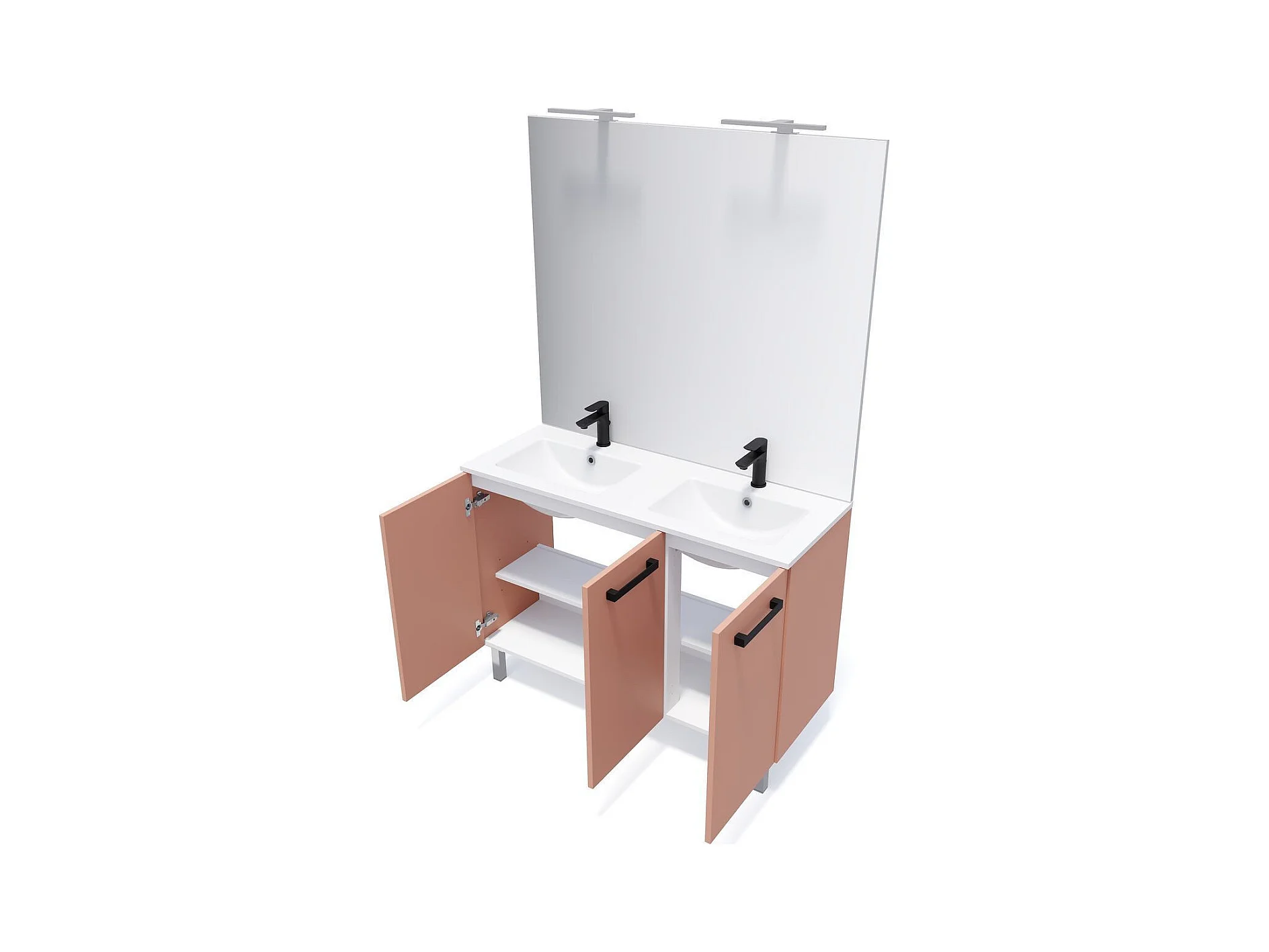 Meuble de salle de bain suspendu avec pieds double vasque intégrée 120cm 3 portes Abricot - Chelsea
