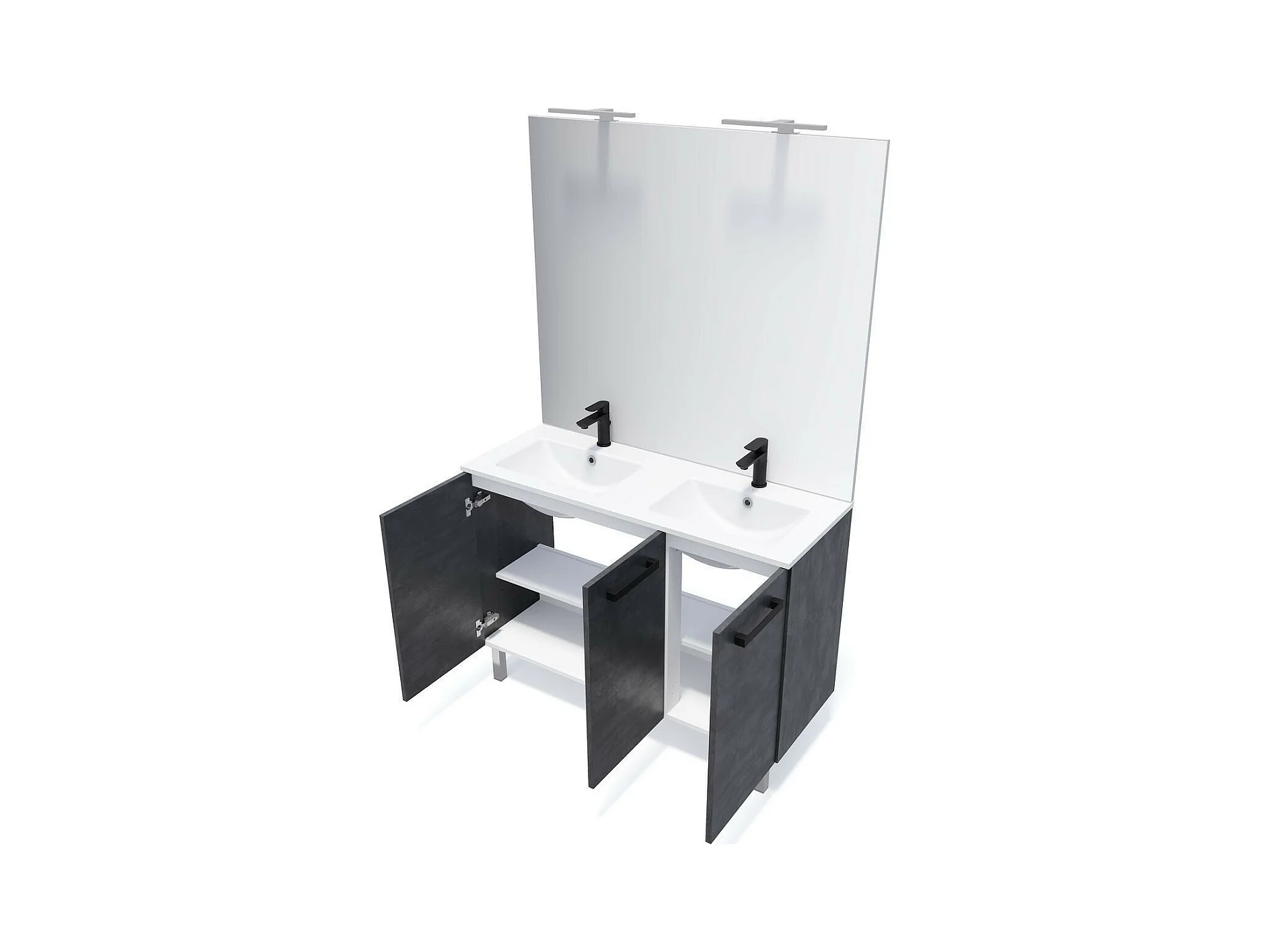 Meuble de salle de bain suspendu avec pieds double vasque intégrée 120cm 3 portes Ardoise métallisée - Chelsea